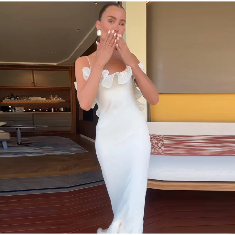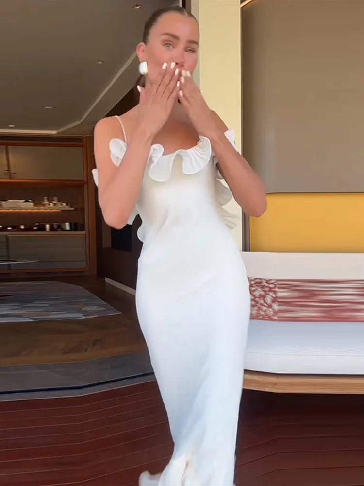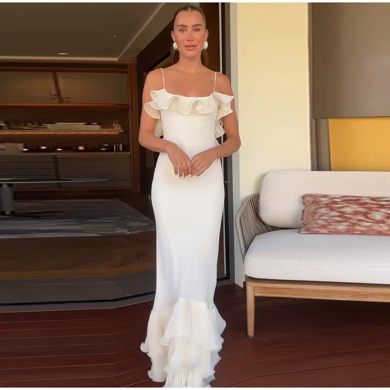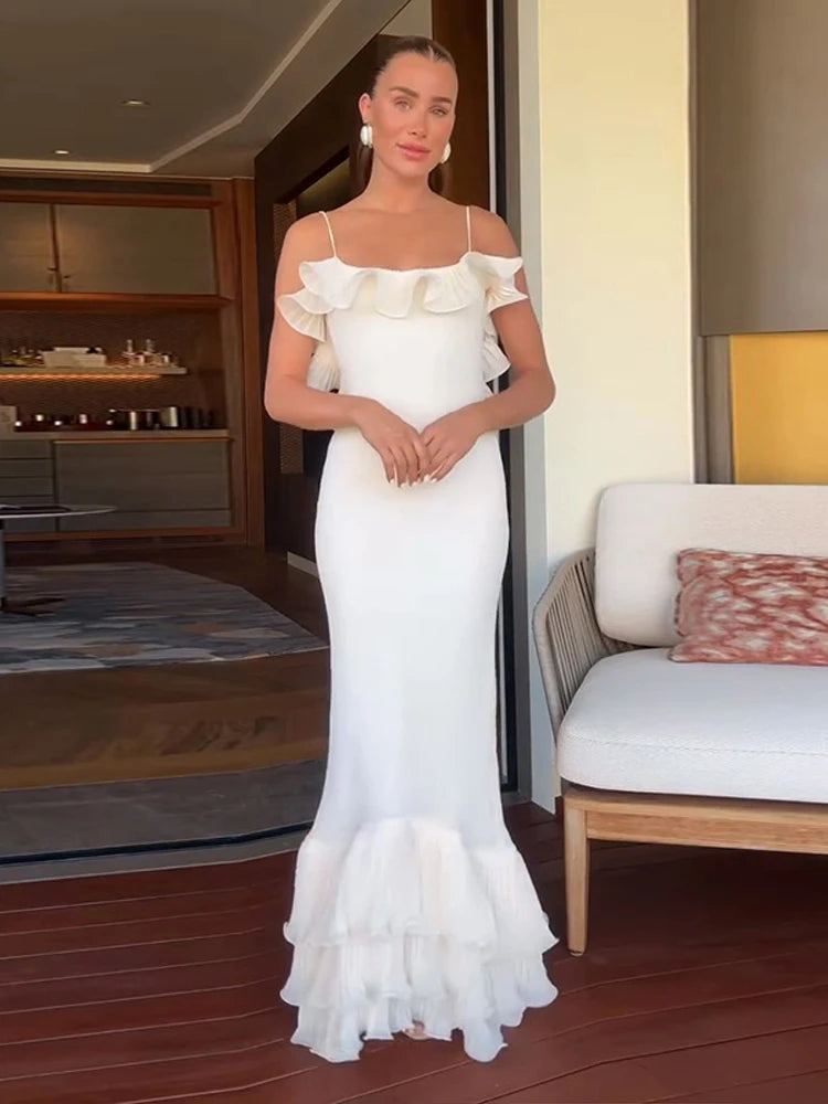 MQTIME - Elegant Ruffles Long Dress Women Off Shoulder Backless Sleeveless Flounce Vestidos Female Summer Chic Evening Dresses