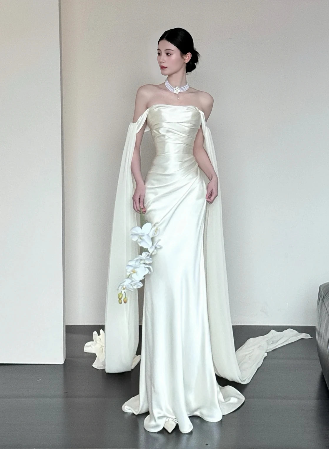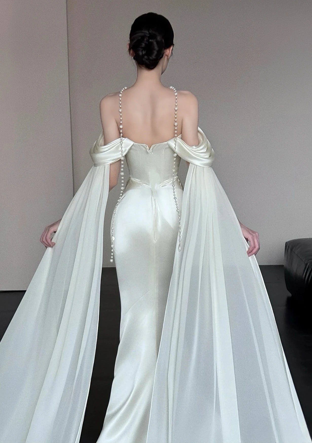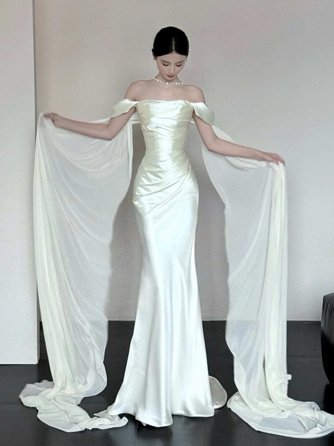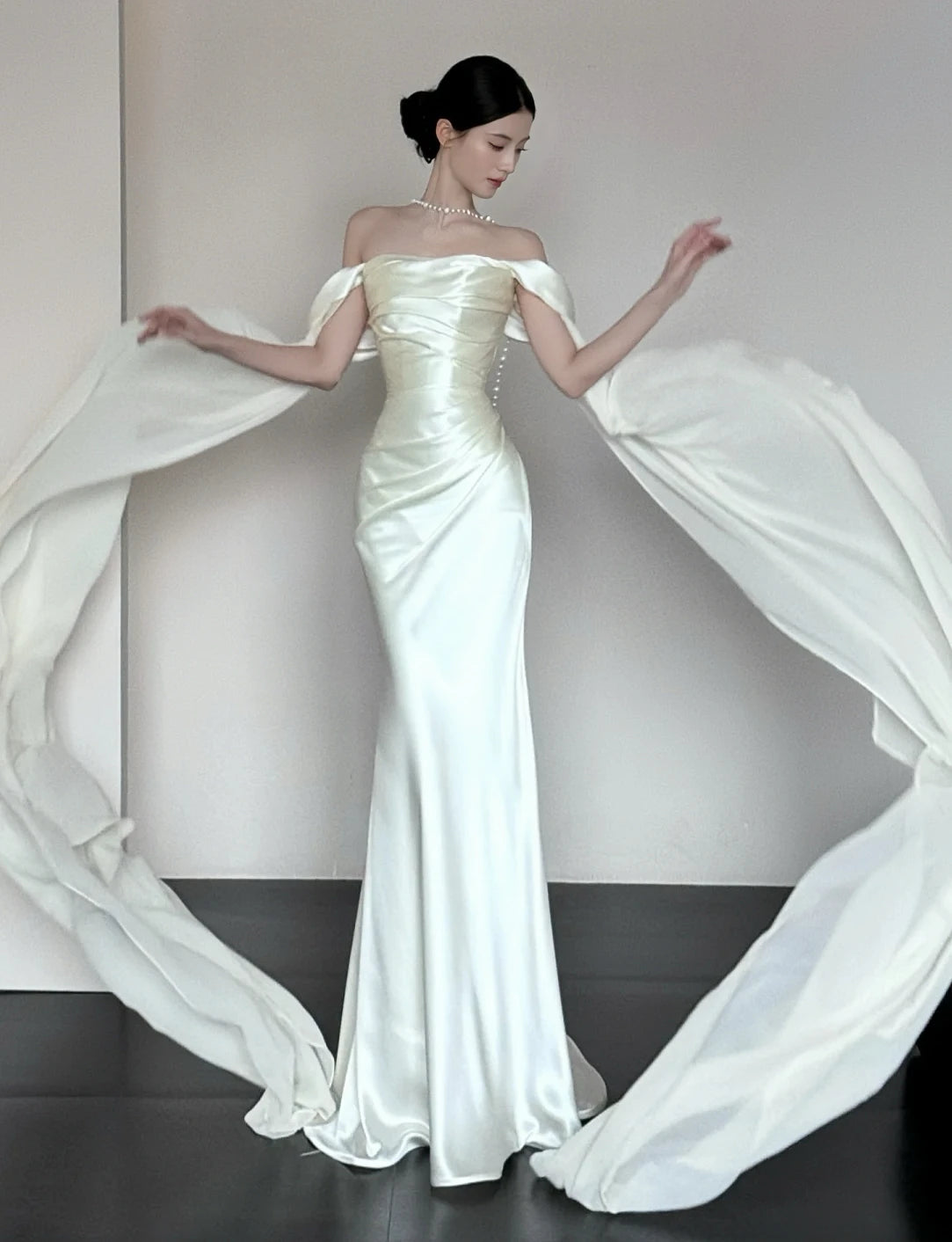 MQTIME - Elegant White Wedding Dress Off The Shoulder Long Ribbon Women Slimming Backless Evening Dress Banquet Robe Formal Party Gown