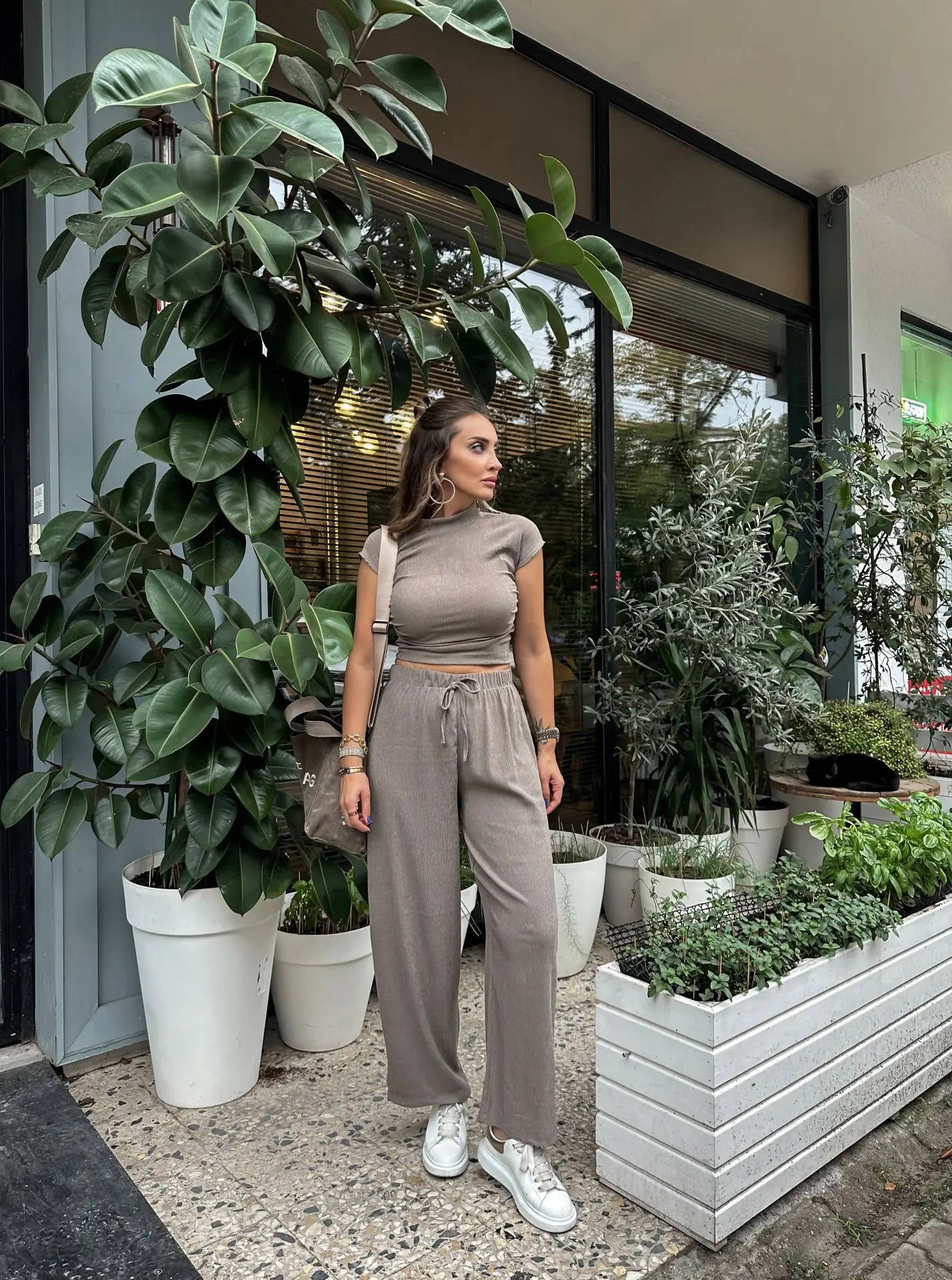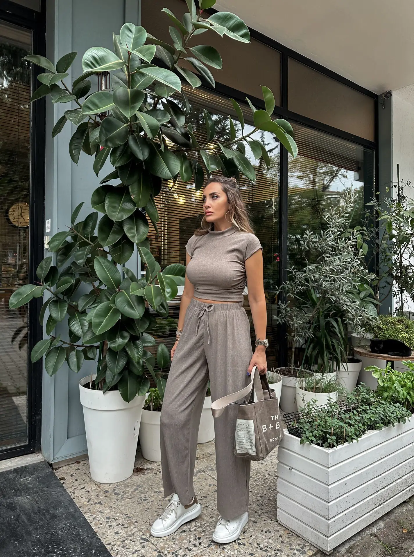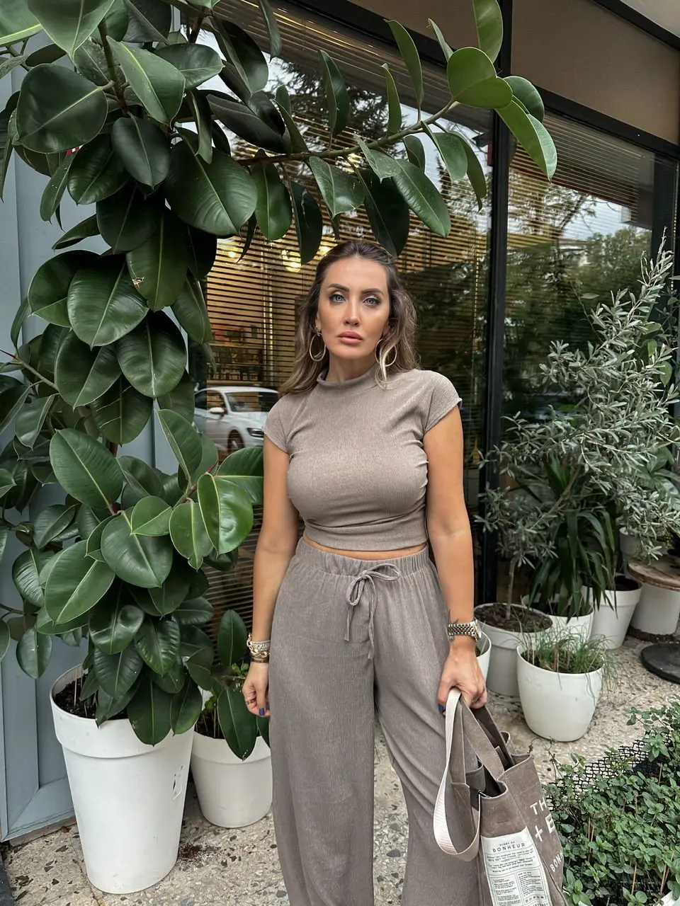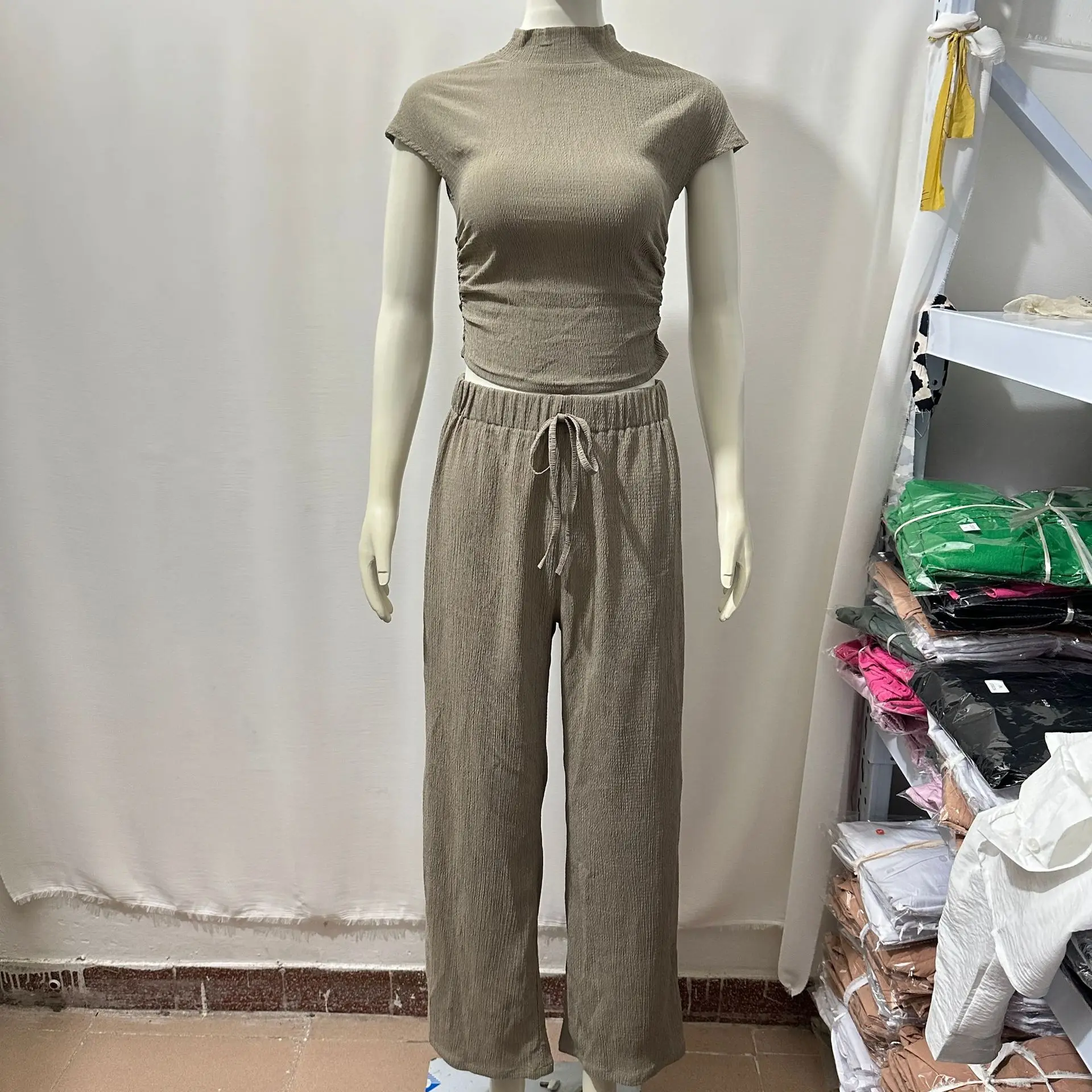 MQTIME - 2024 New Solid Casual Pants Sets Women Spring Summer Side Drawstring Cropped Tops+high Waist Trouser Suits Fashion Chic Outfits