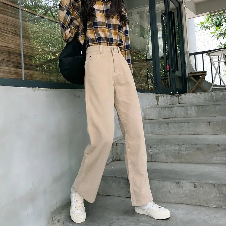 MQTIME - 2024 new women Winter High Waist Corduroy Pants Wide Leg Trousers Autumn Streetwear Casual Harajuku Long Pants Loose Trousers
