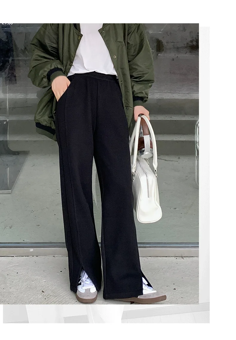 MQTIME - Autumn Wide Leg Pants Women's High Waist Straight Casual Split Pocket Slim Pants