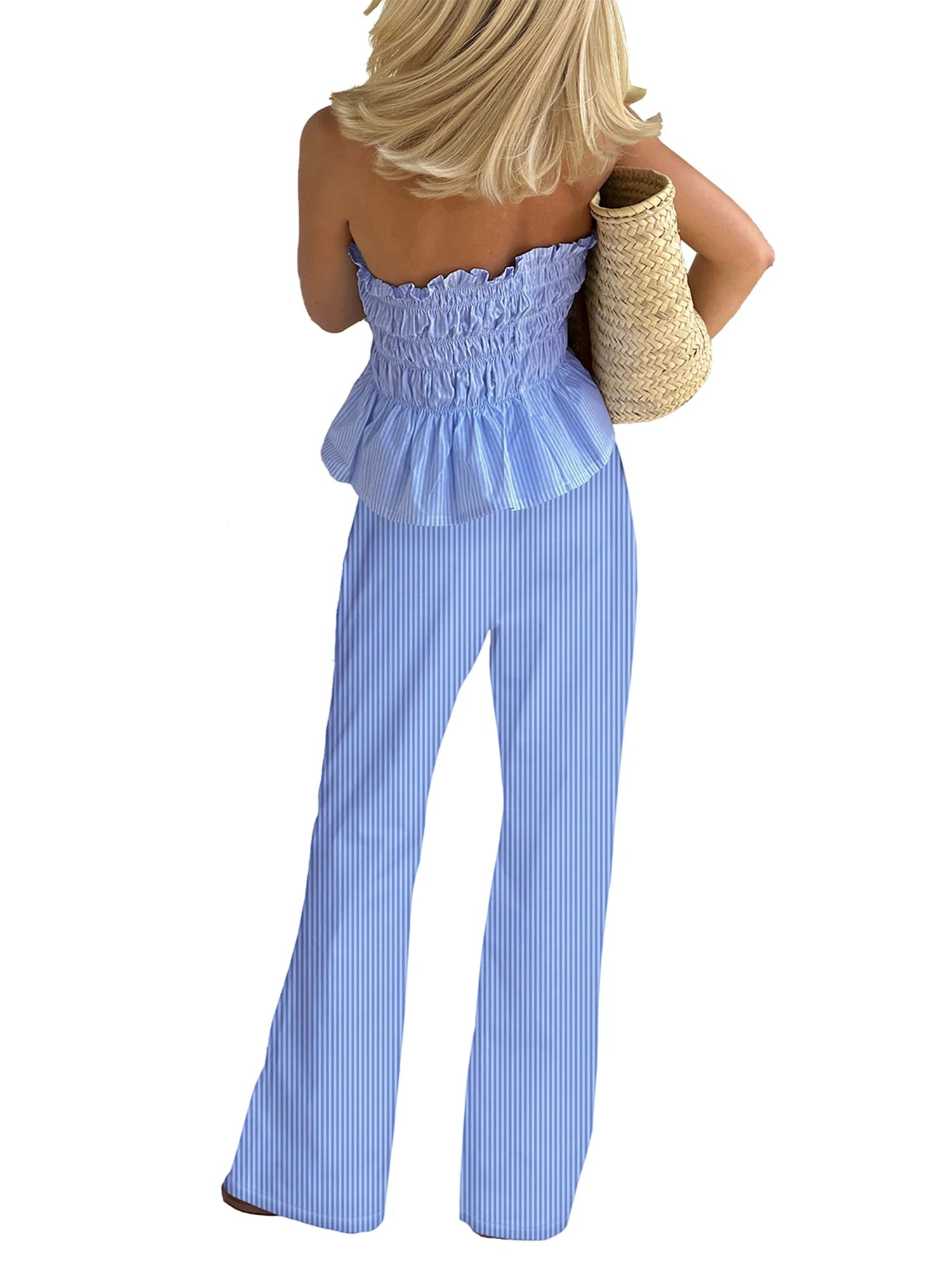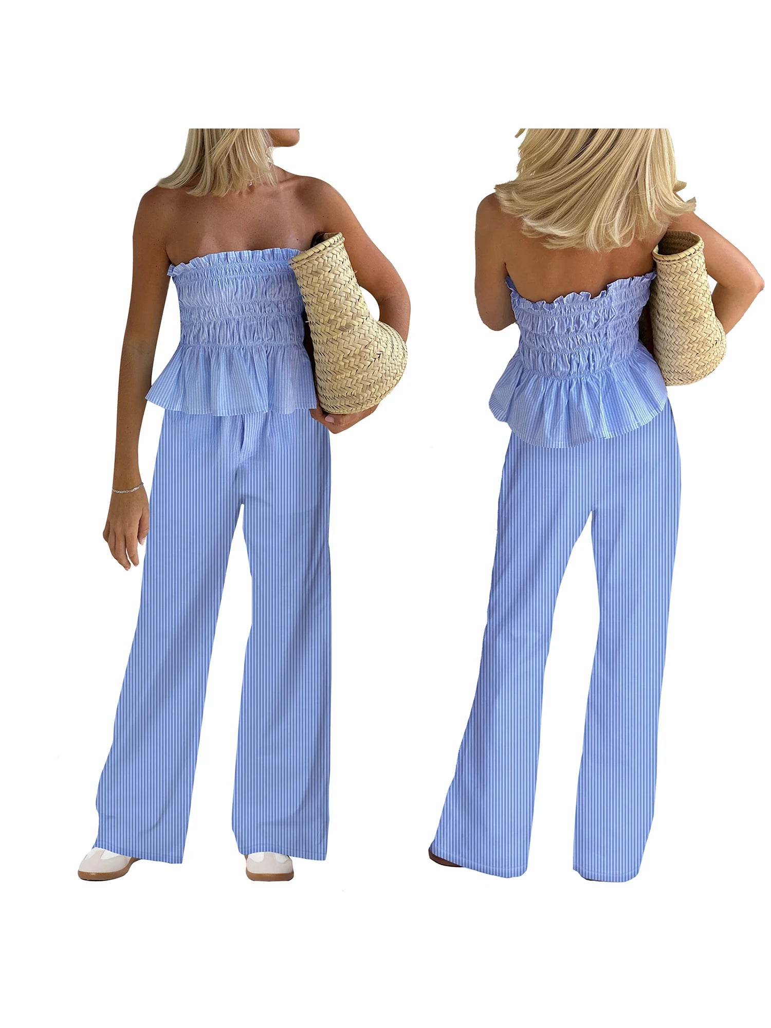 MQTIME - Elegant Floral Print Off-Shoulder Blouse and High-Waisted Palazzo Pants Set for Women s Autumn Fashion 2 Piece Outfit