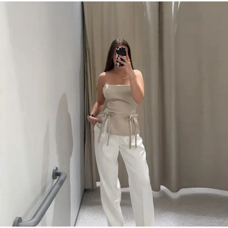 MQTIME - Elegant Lace Up Bow Women Pant Sets Sexy Backless Straps Sleeveless Top Loose Wide Leg Pants Suit Female 2025 Summer Lady Outfit