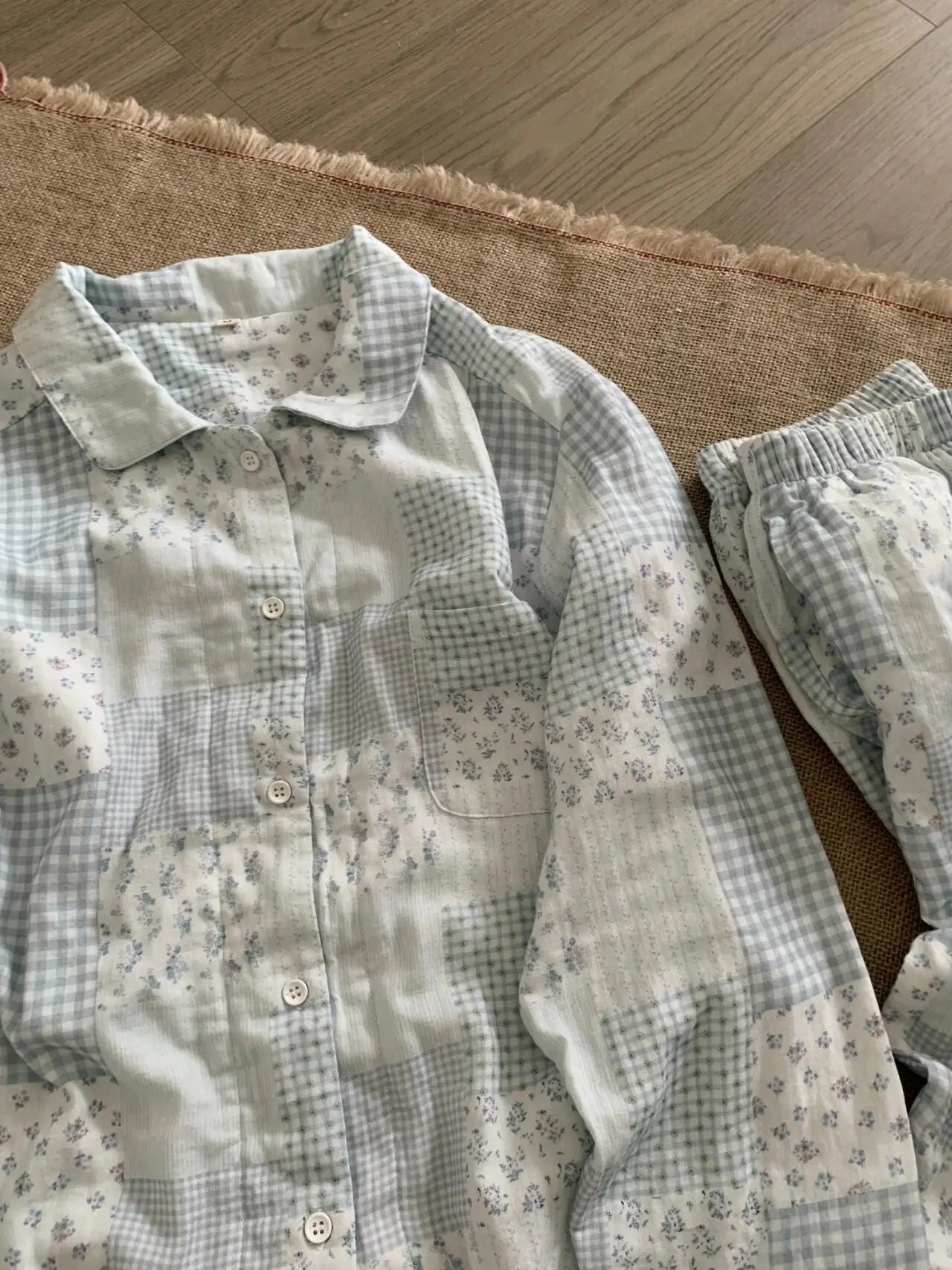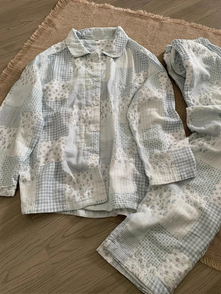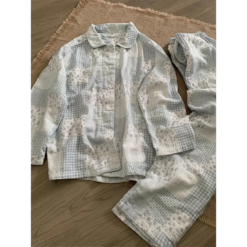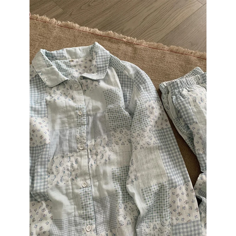 MQTIME - Fre Floral Long Sve Spwear Women's Autumn Sle New Plaid Open Cardigan Long Pants Home Clothes Set Can Go out