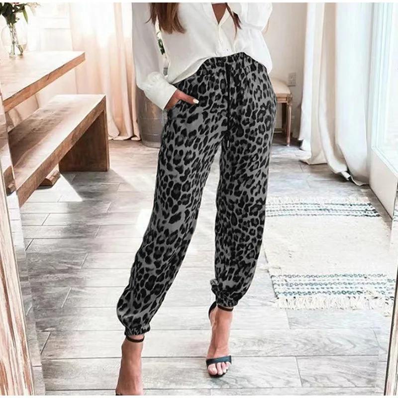 MQTIME - Leopard Print Women's Pants Elastic Waist Pocket Cropped Trousers Female Summer Autumn Fashion Loose Casual Ladies Pant