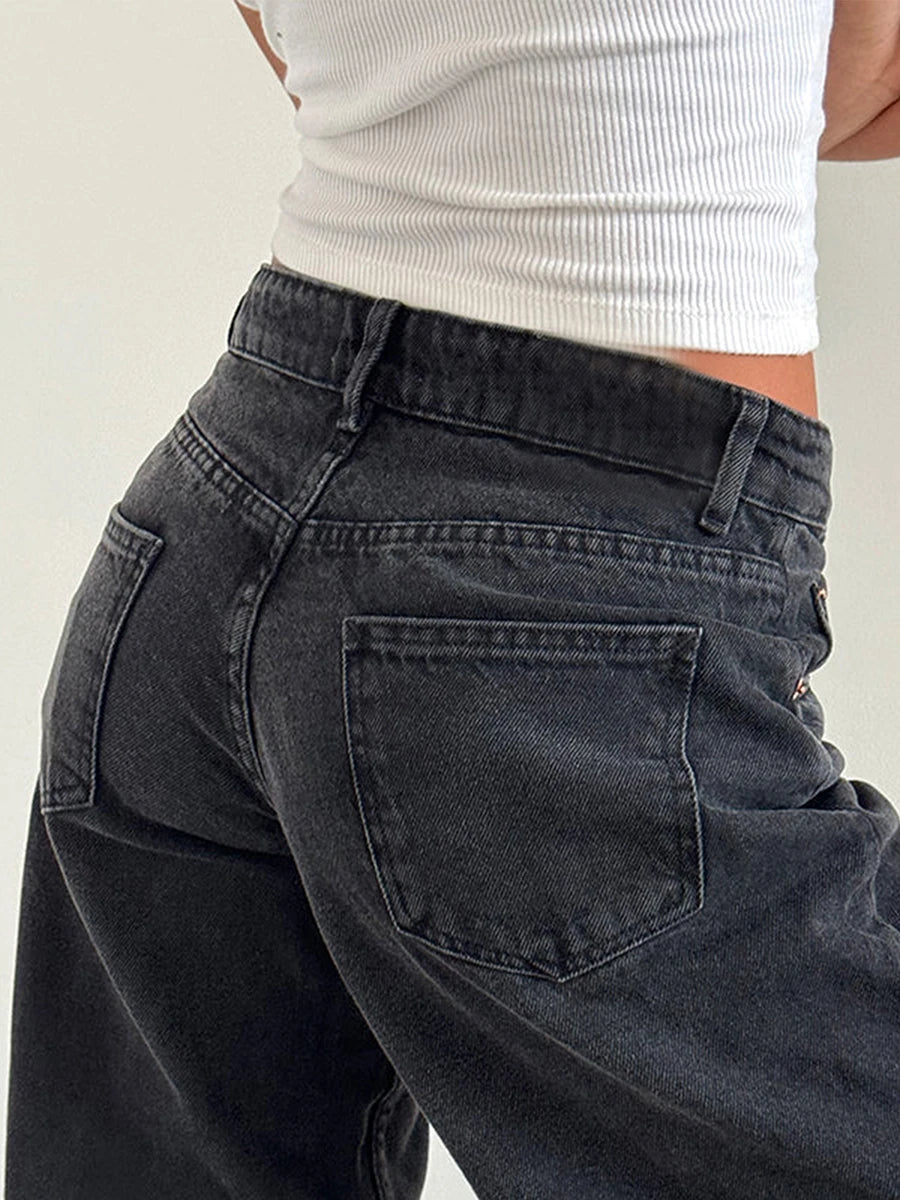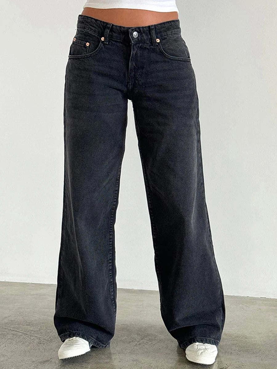 MQTIME  -  New Fashion Autumn Winter Solid Color Loose Denim Pants Women Low Waist Wide Leg Trousers with Multi Pockets Streetwear