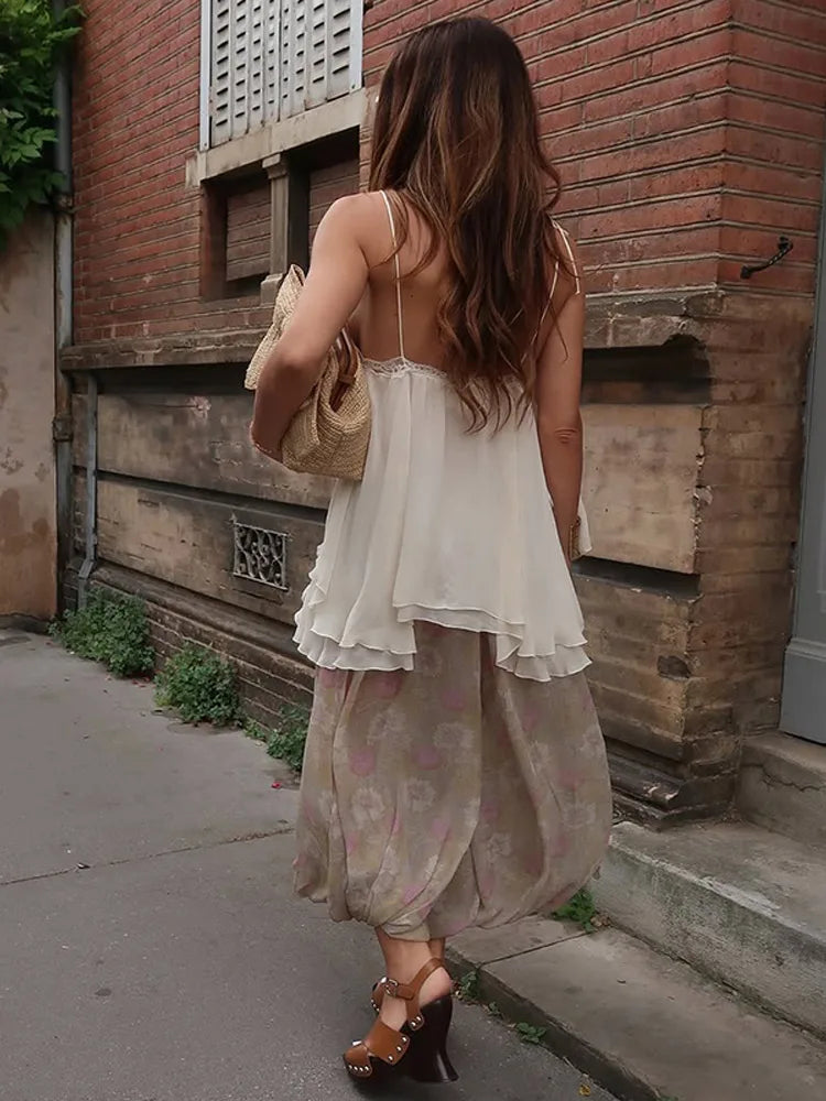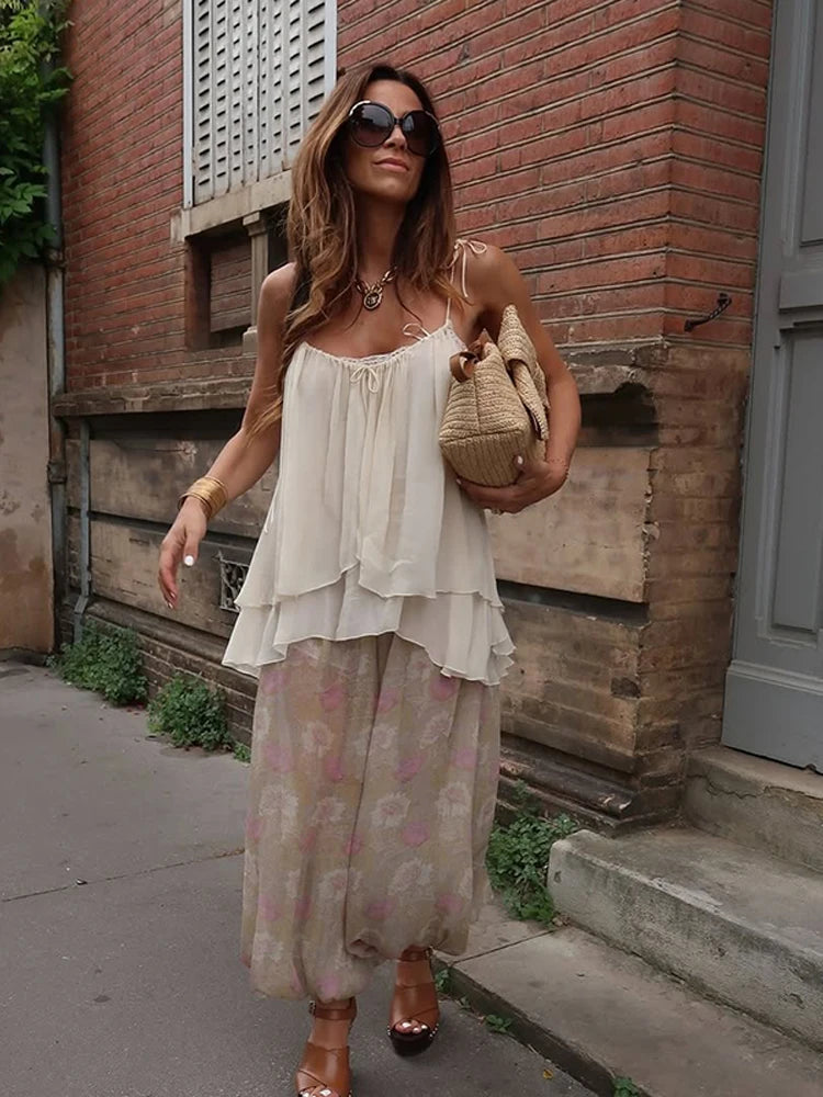 MQTIME - Retro Loose Print Pants Women Casual High Waist Long Lantern Female Trousers 2025 Summer Autumn Street See Through Pants Lady