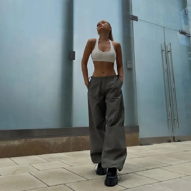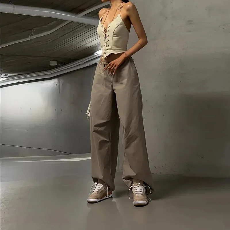Mqtime Retro low waist drawstring casual pants women's summer bundle feet loose straight pendant pants everything with wide leg pants