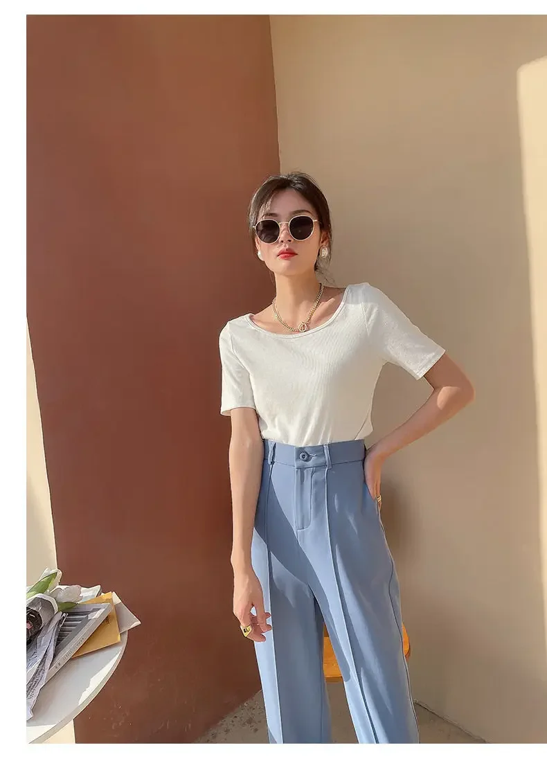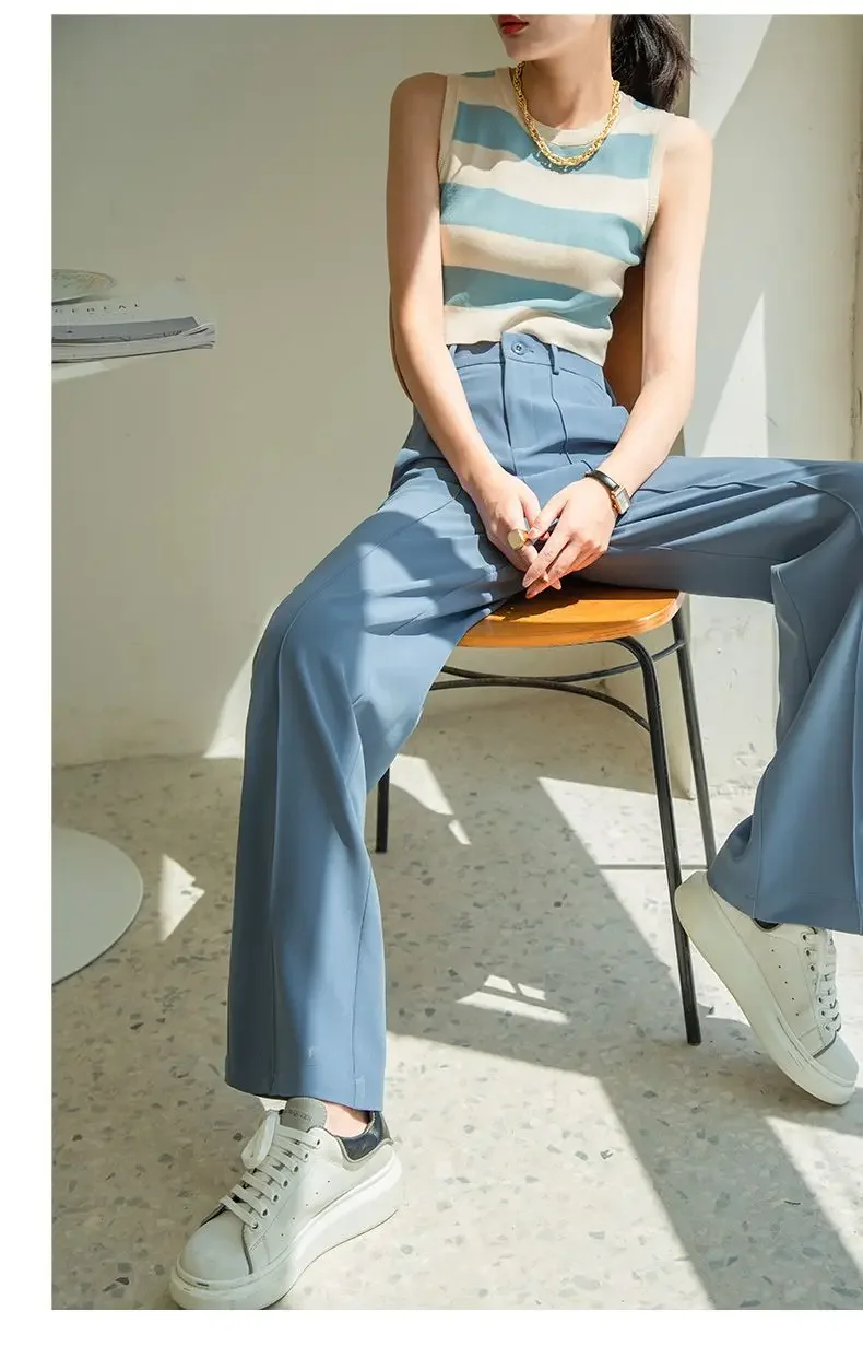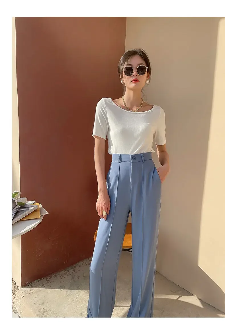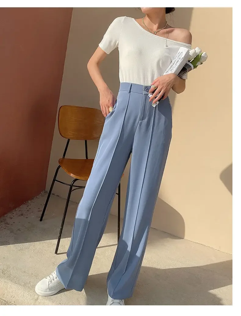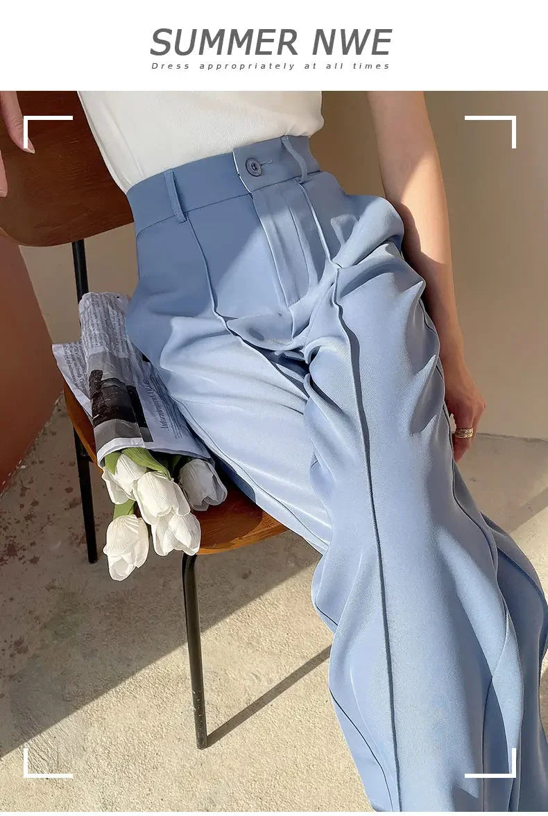 MQTIME - Solid Loose Wide Pants Woman New High Waist Fashion Straight Women's Pants Spring and Autumn Office Suit Trousers Womens