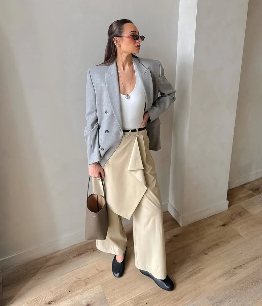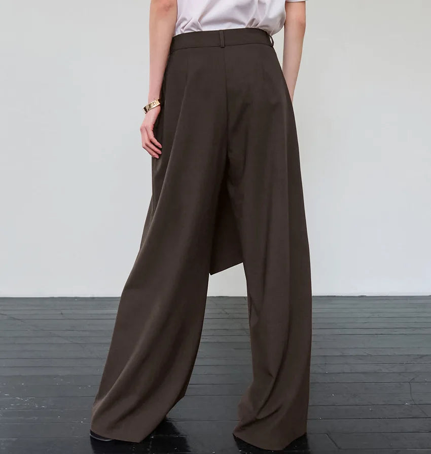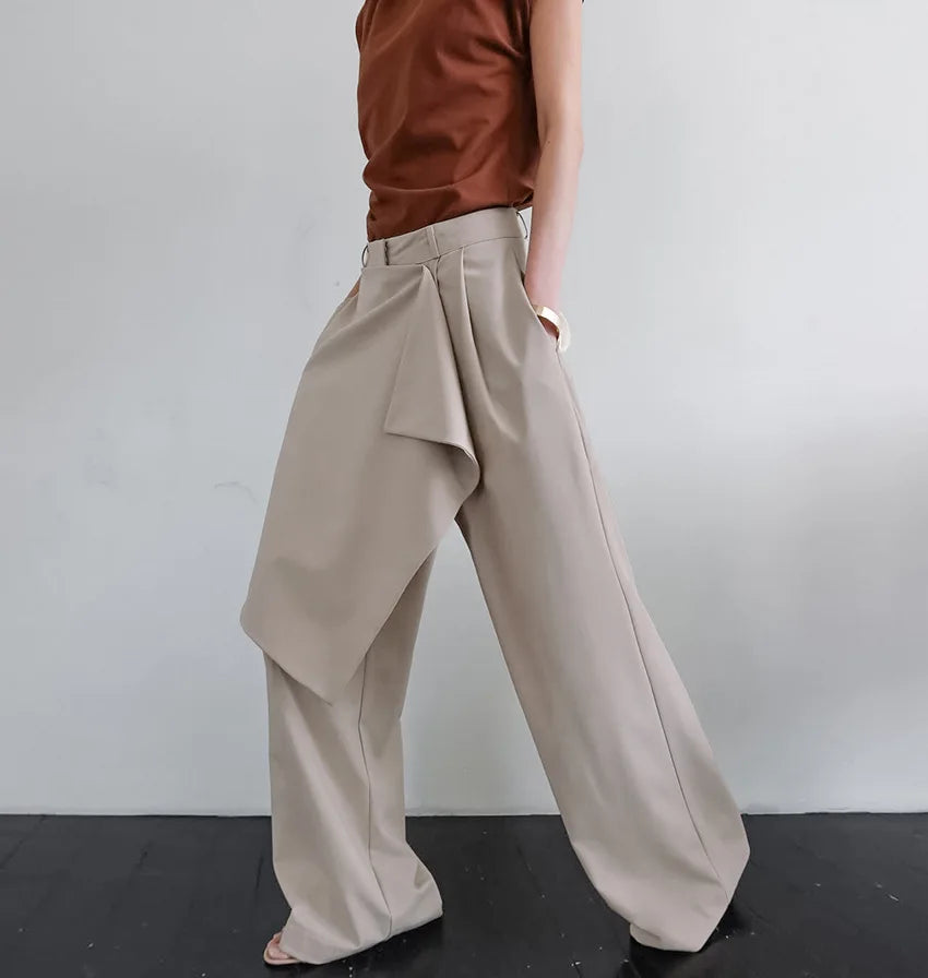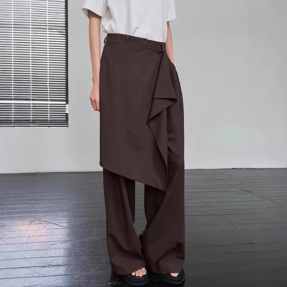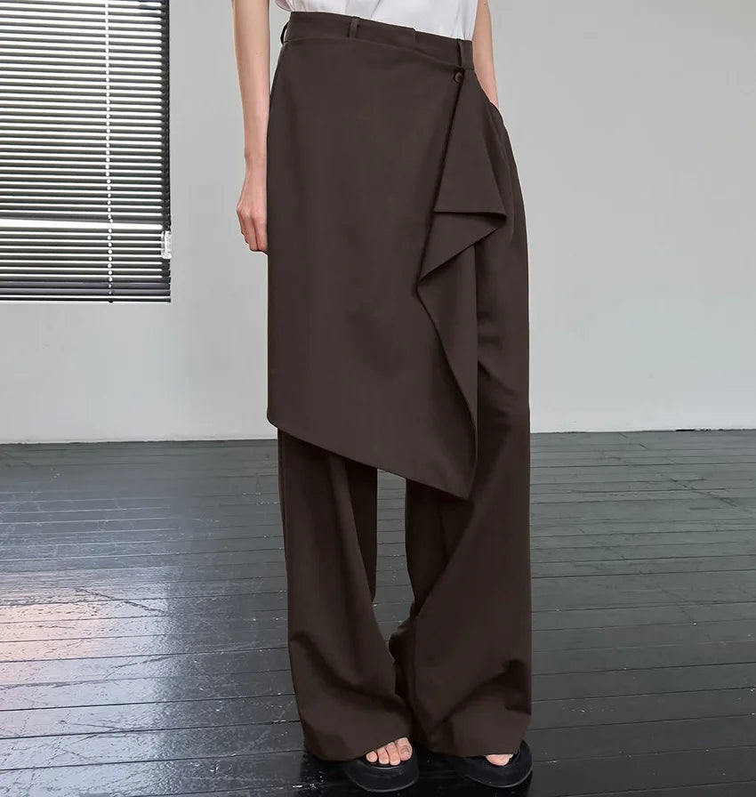 MQTIME - Spliced Wrapped Wide-leg Pants Women's 2025 Autumn New Design High-waisted Slimming Casual Trousers Women's Clothing