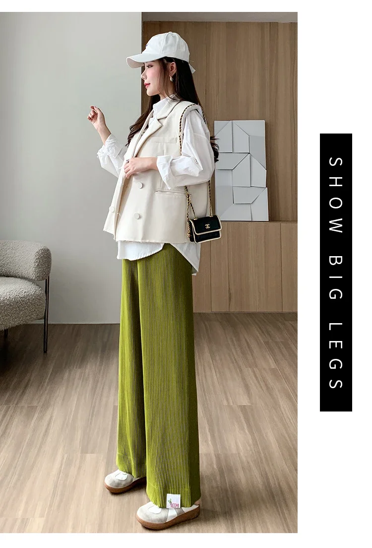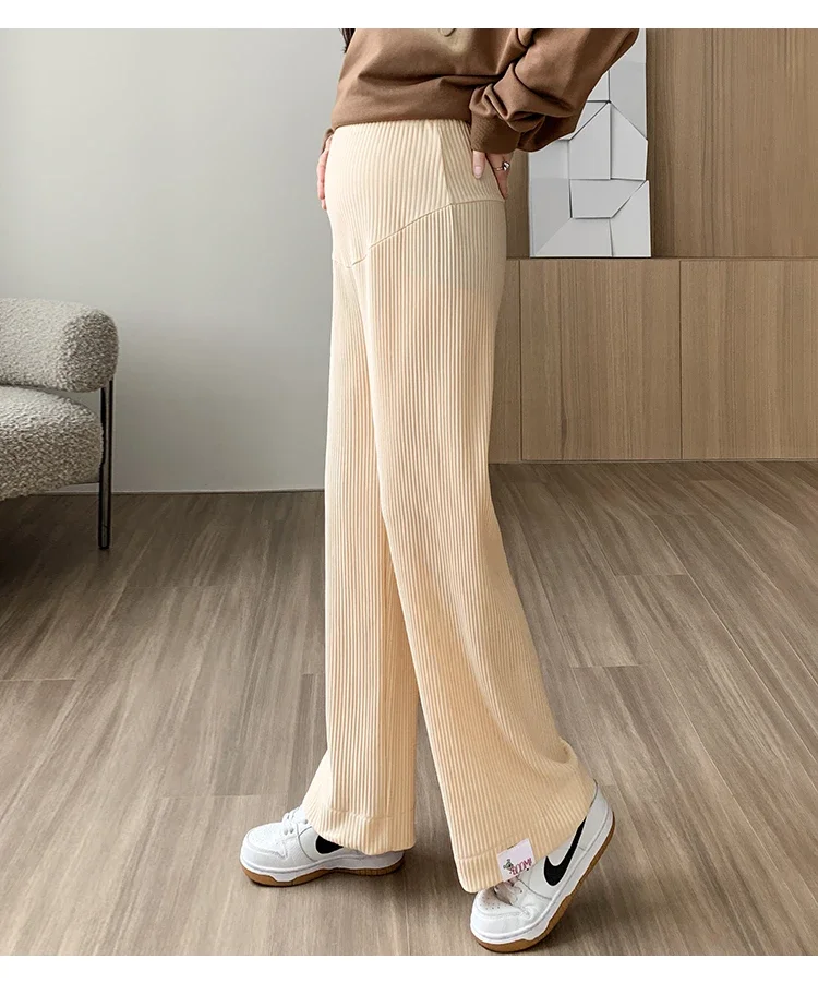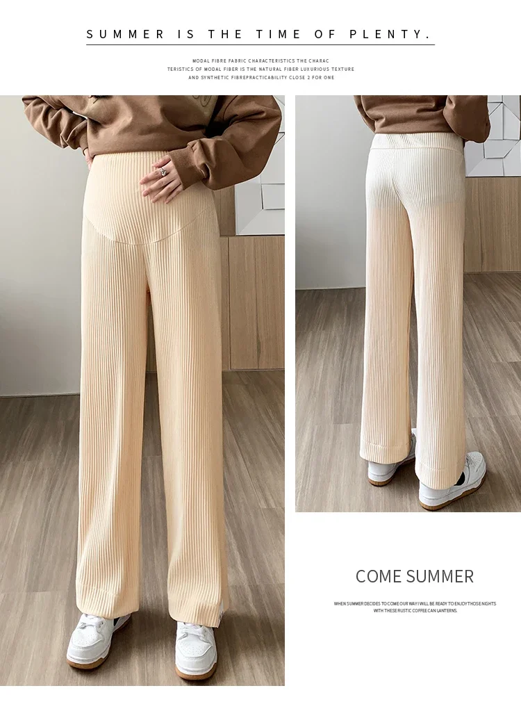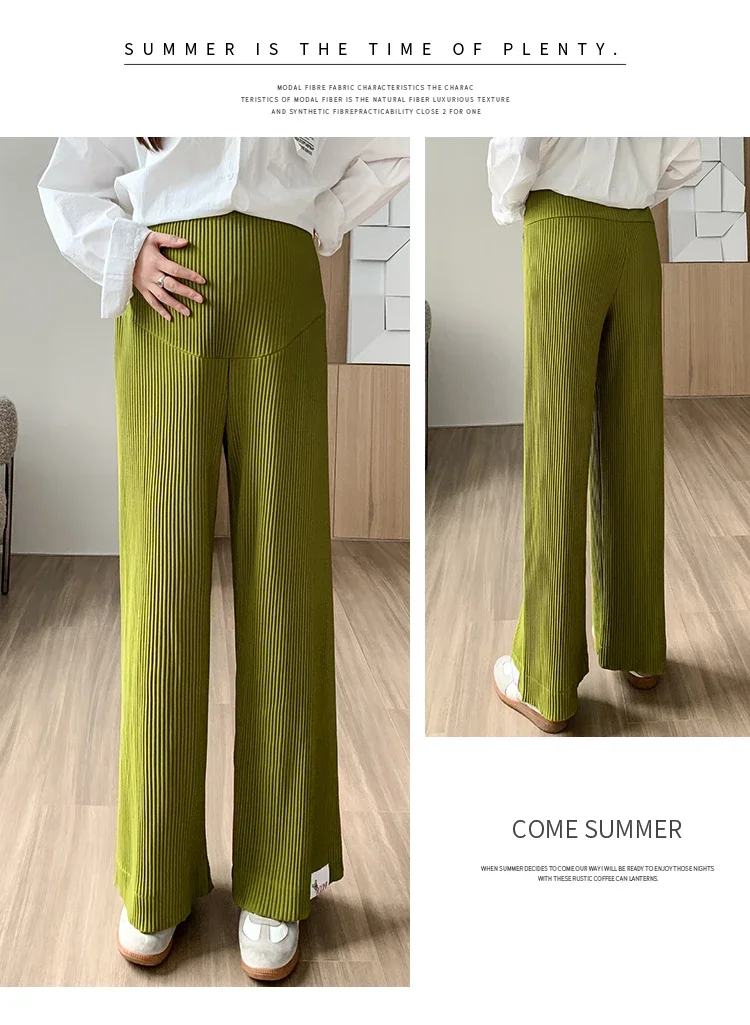 Mqtime Spring Summer Fashion Pleat Chiffon Maternity Pants Wide Leg Loose Straight Belly Trousers Clothes for Pregnant Women Pregnancy
