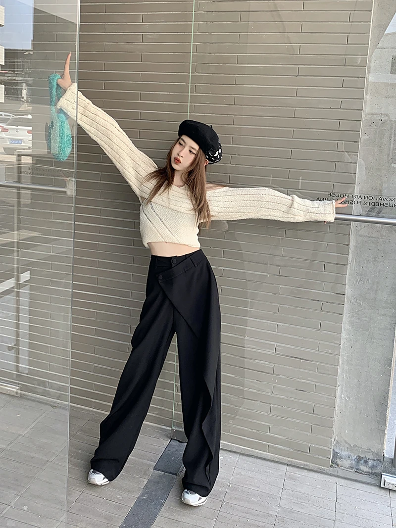 Mqtime Streetwear Y2K Irregular Loose Casual Pants Women Spring New High Waist Fashion All-match Solid Color Wide Leg Pants