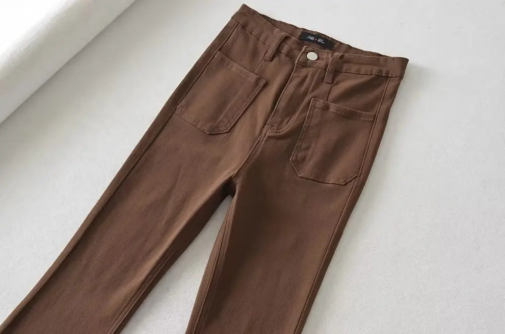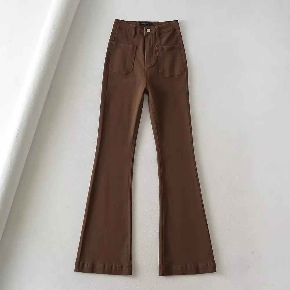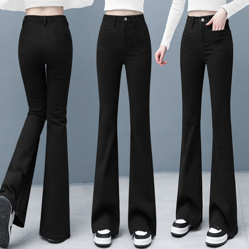MQTIME - Women Flared Jeans Loose Denim Pants Bottom Straight High Waist Stretch Spring Autumn Solid Color Female Fashion Streetwear