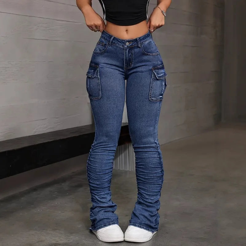 MQTIME - Women High Waist Elastic Jeans Ladies Sexy Hip Lifting Denim Pants Multi Pocket Summer Fashion Streetwear Female Slim Trousers