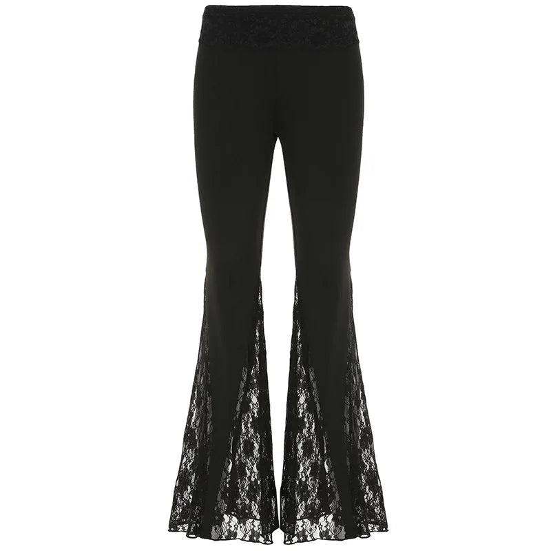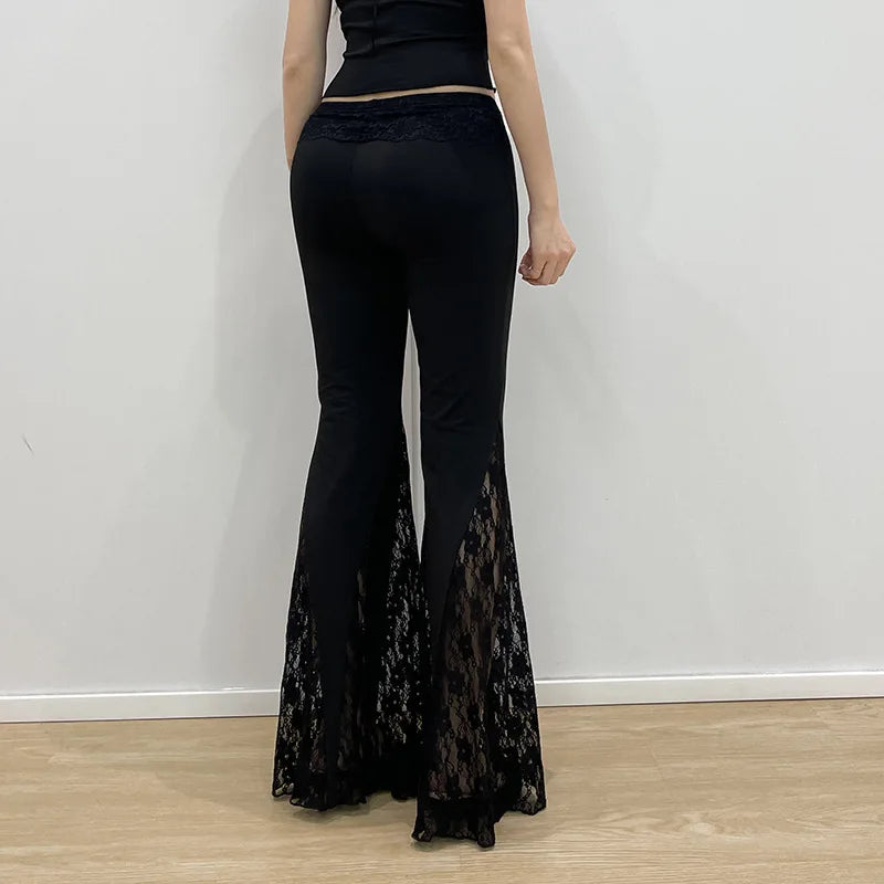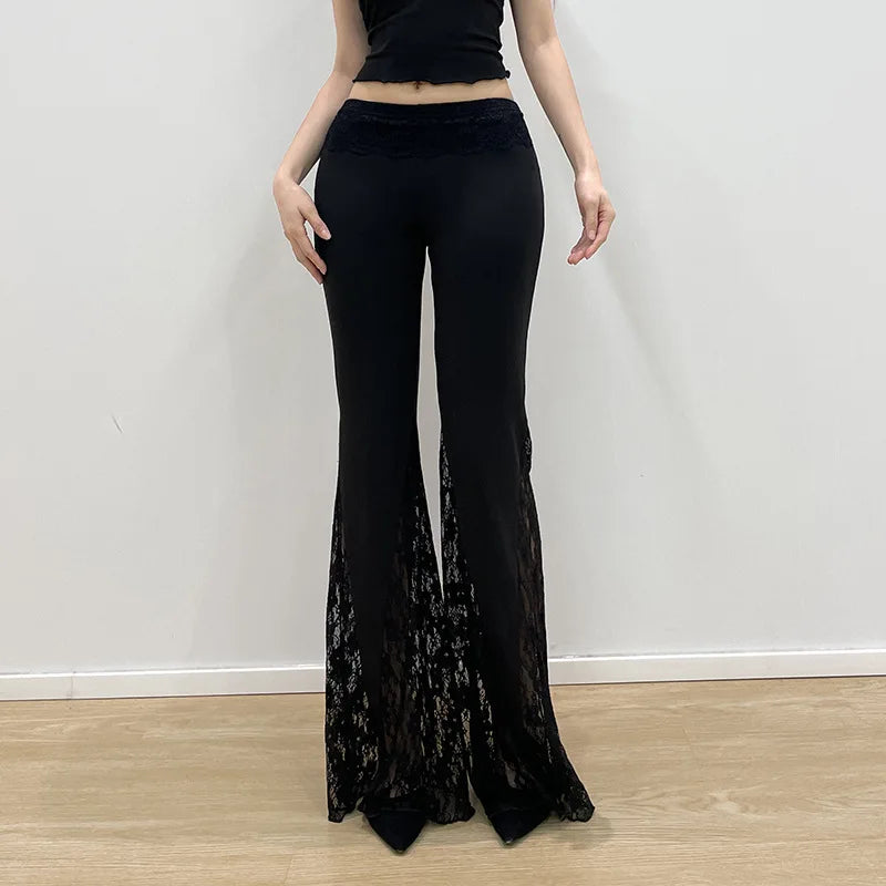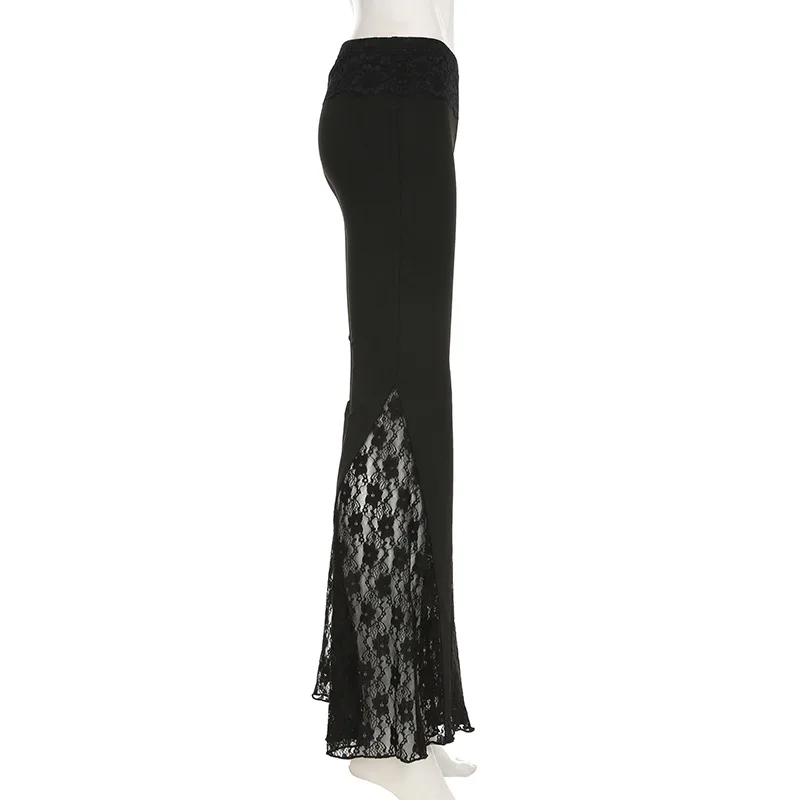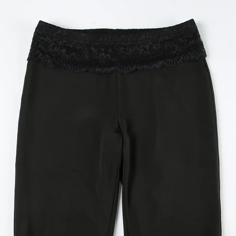 MQTIME  -  Women's 2025 Autumn Spring Fashion Streetwear Lady Casual Patchwork Lace Flare Pants Sexy Slim Mid-Waisted Wide Leg Pants
