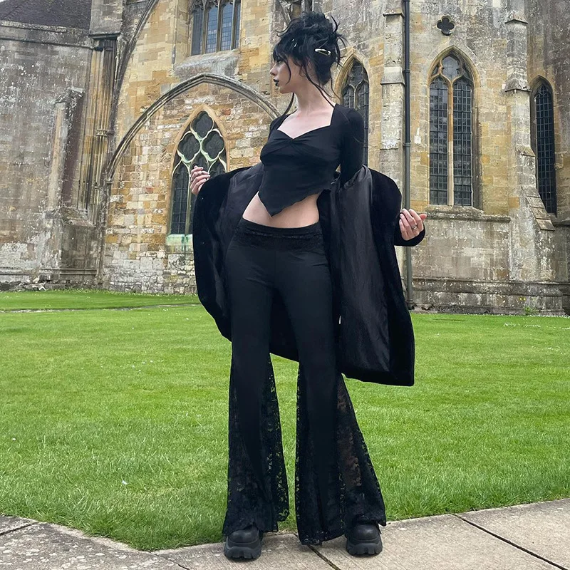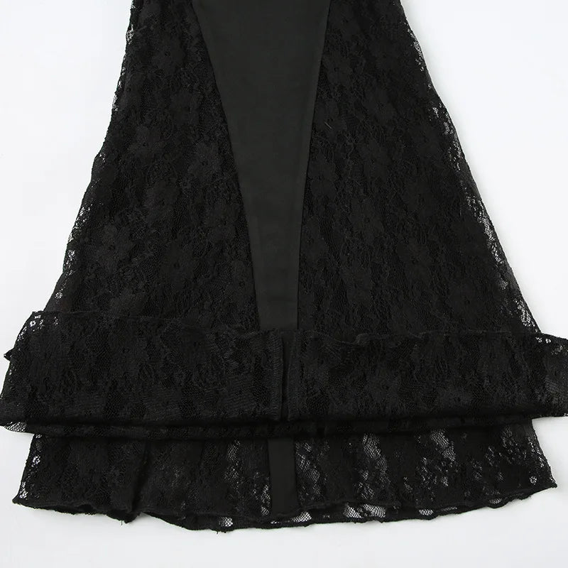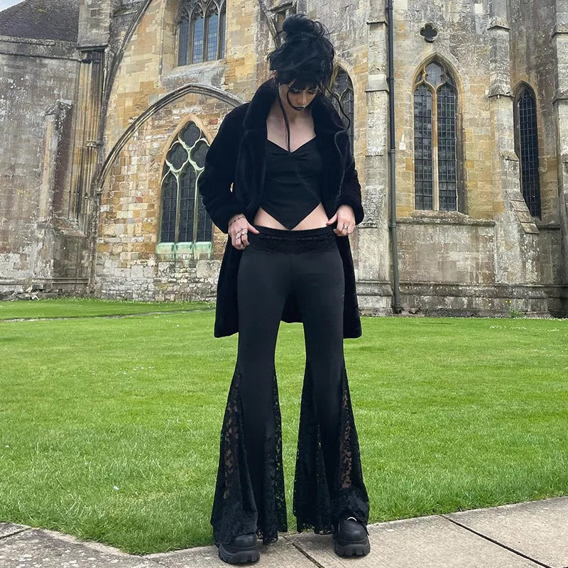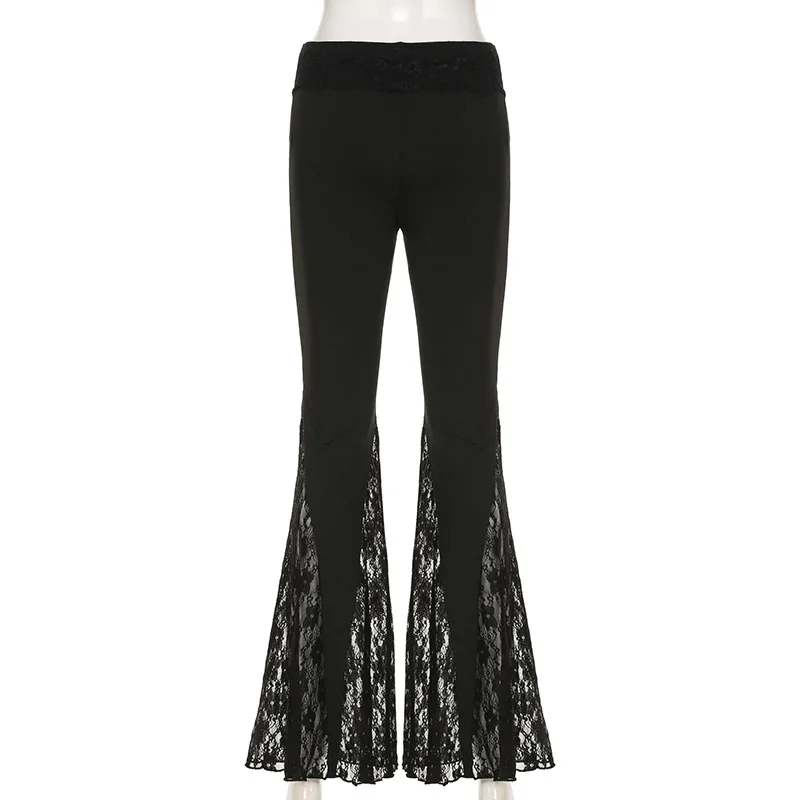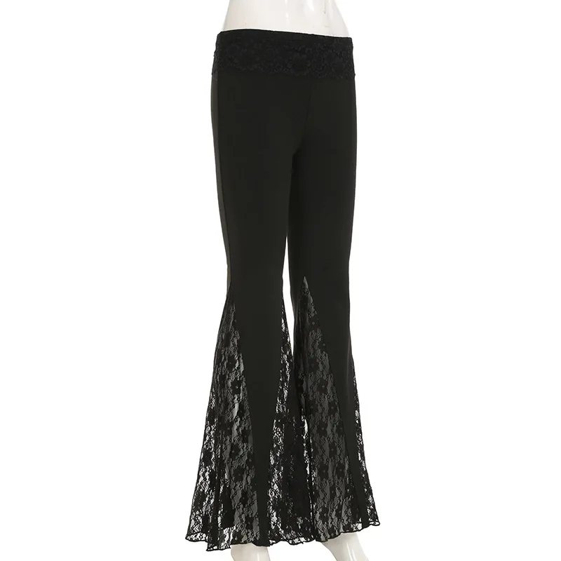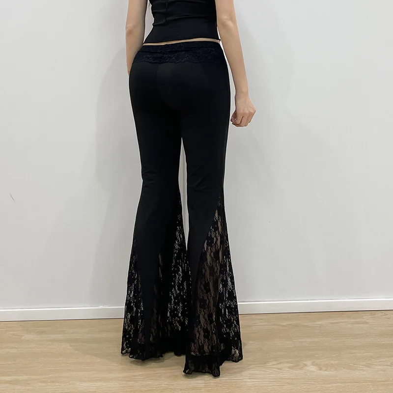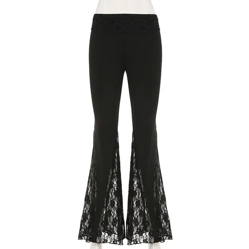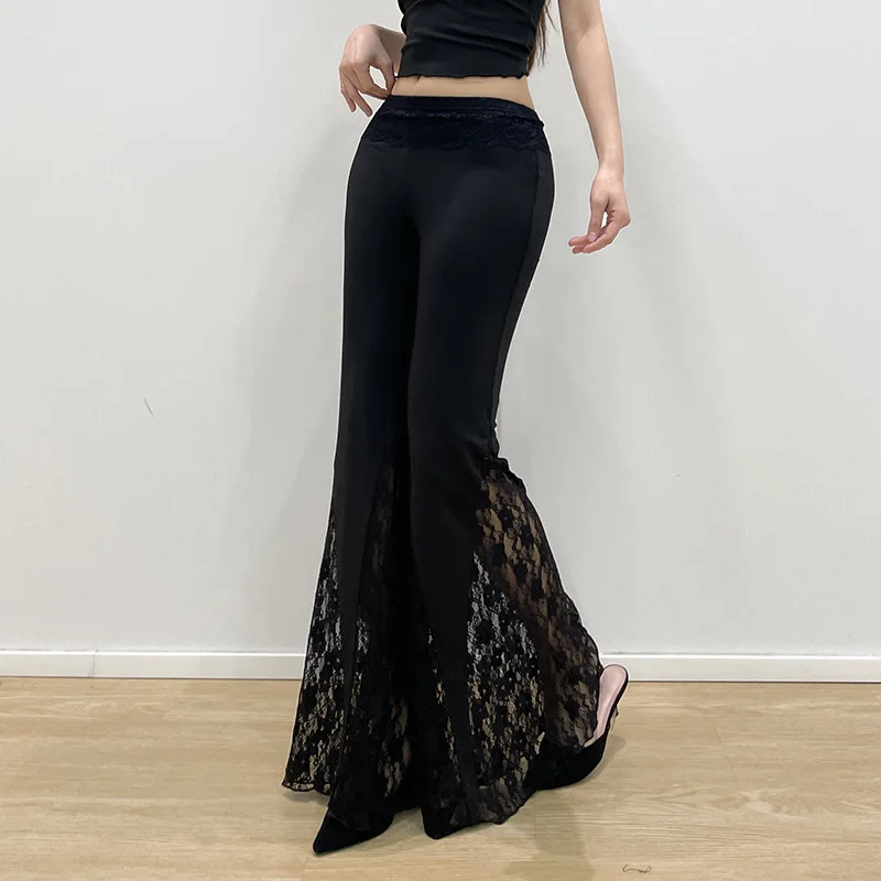 MQTIME - Women's 2025 Autumn Spring Fashion Streetwear Lady Casual Patchwork Lace Flare Pants Sexy Slim Mid-Waisted Wide Leg Pants