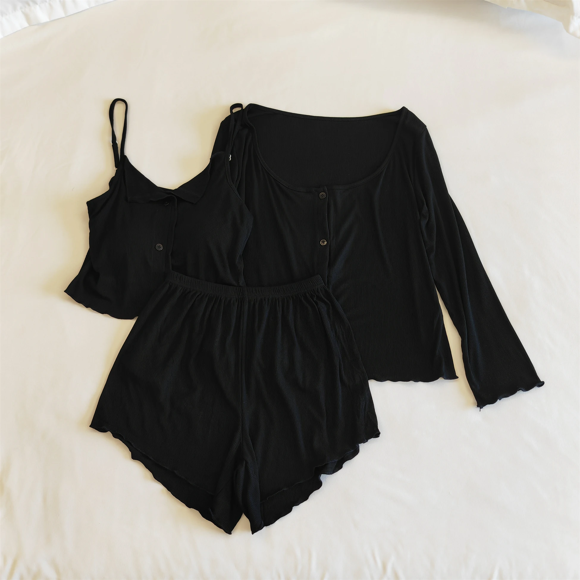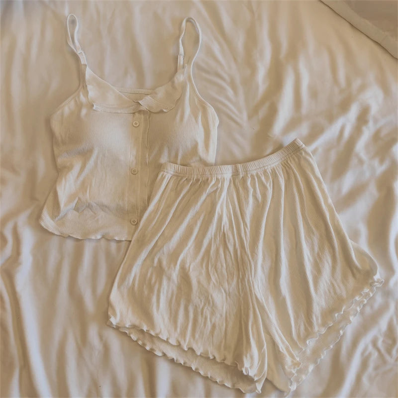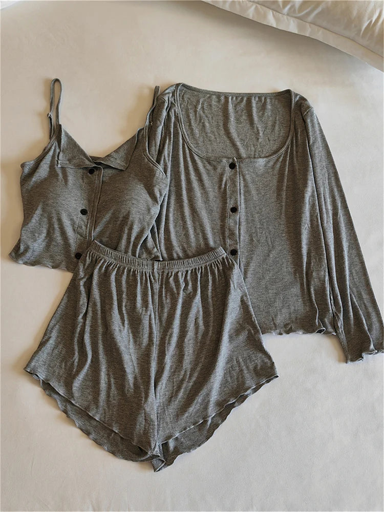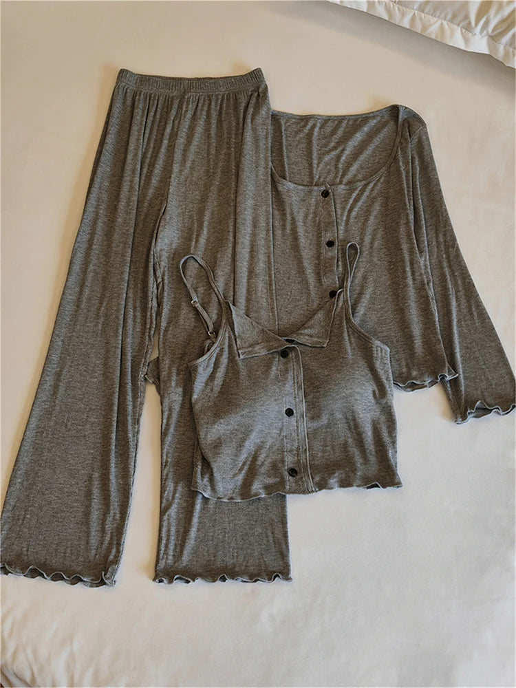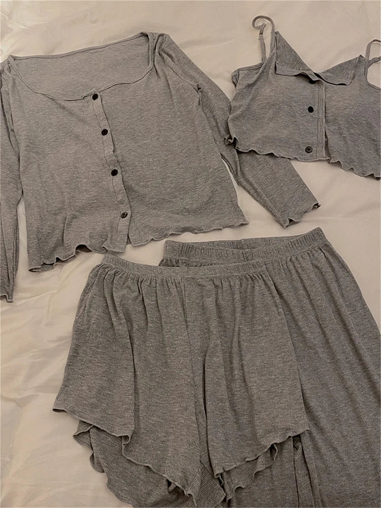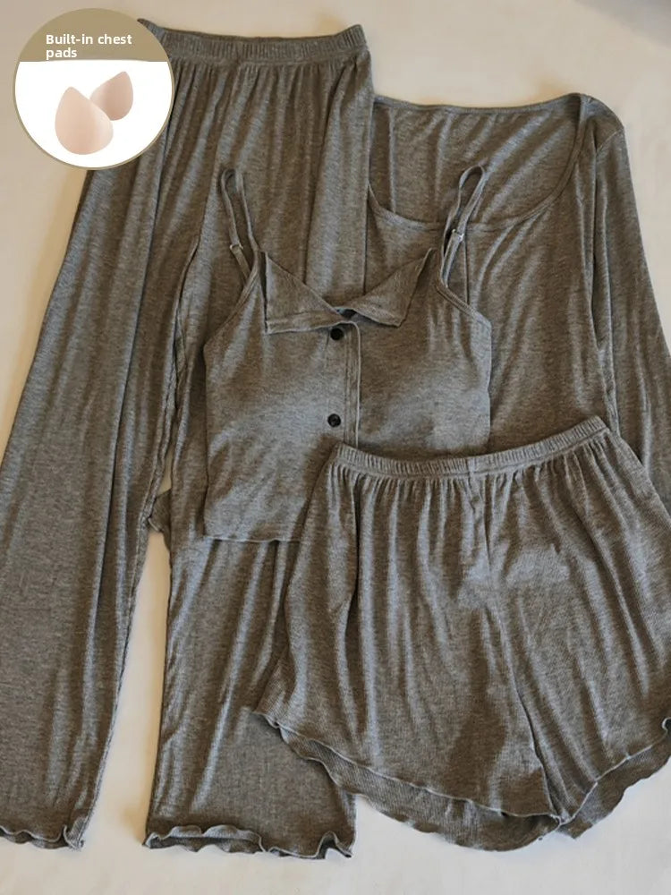 MQTIME - Women's Modal Cotton Spwear Set Spring Autumn Summer Four-Piece Strap Long Pants Chest Pad Home Clothes Outdoor Wear