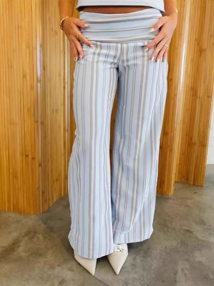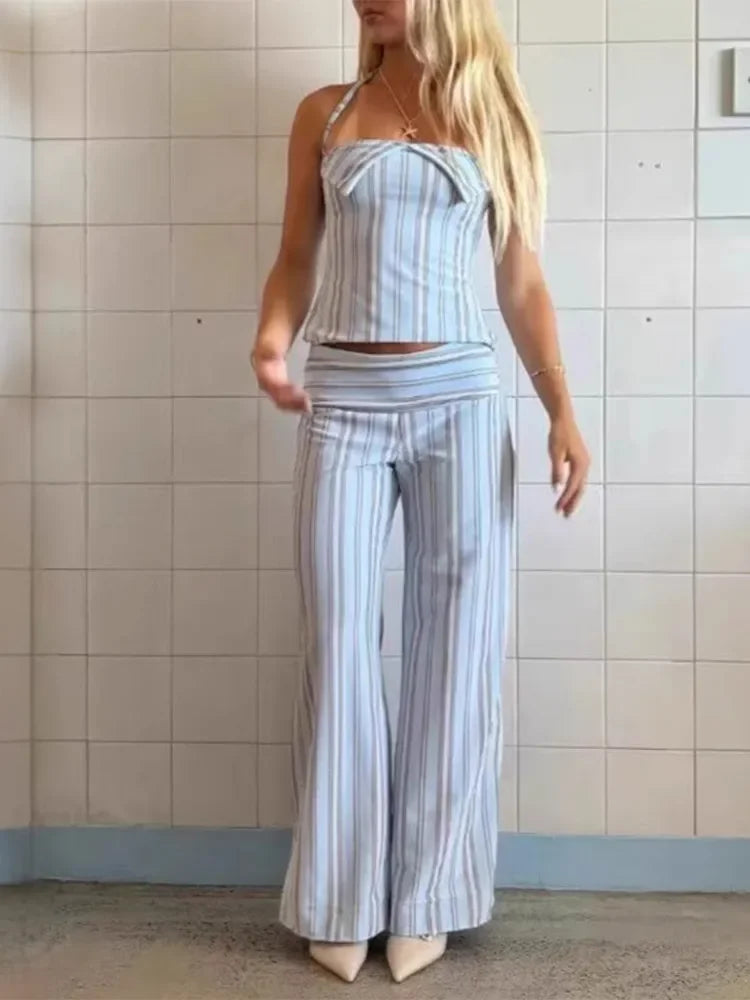 MQTIME  -  Women's Striped High Waist Wide Leg Pants Sets Chic Sleeveless Backless Halter Lace Up Tops Suits 2025 Summer Casual Street Wear