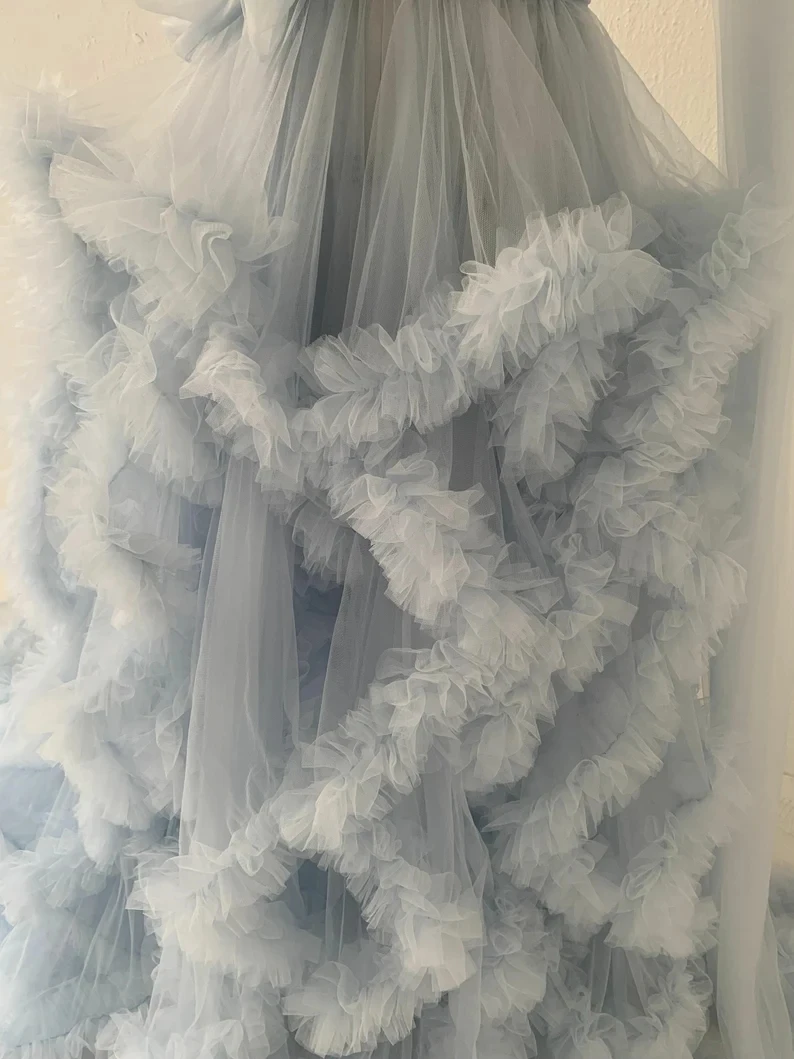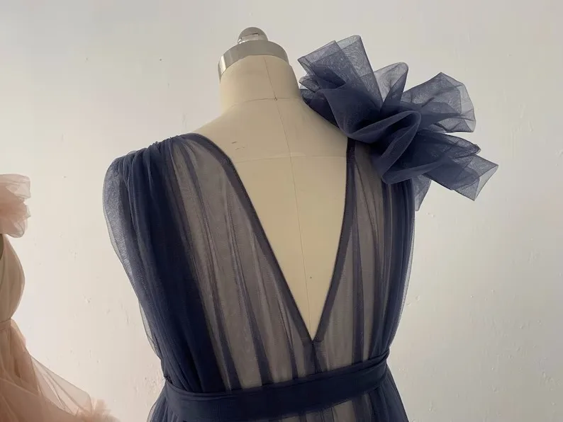 MQTIME - Blue Tulle Maternity Dress for Photo Shoot/Plus Size Maternity Gown/Baby Shower Dress/Photography Dress