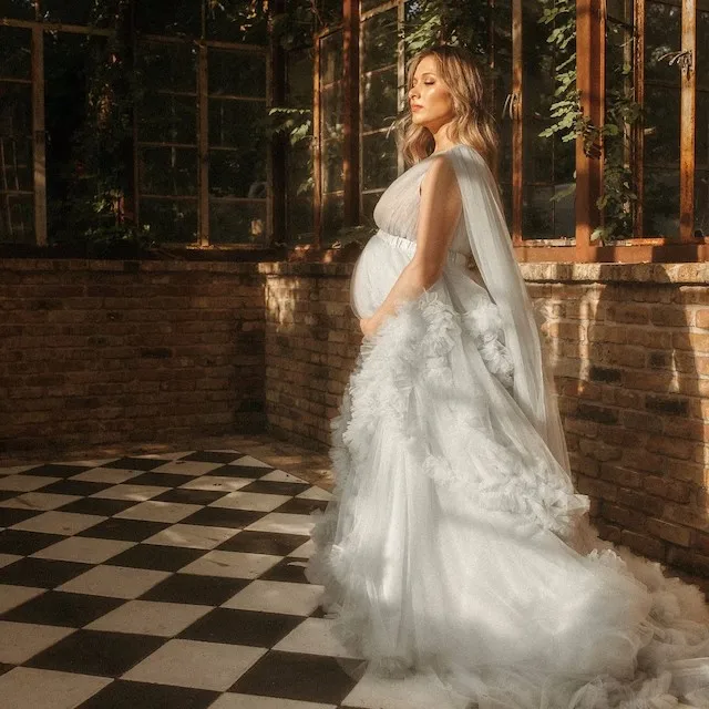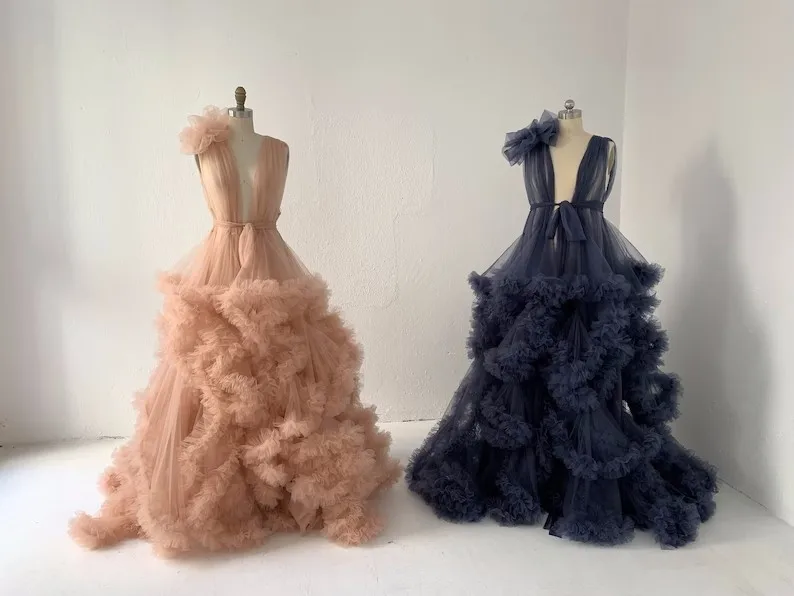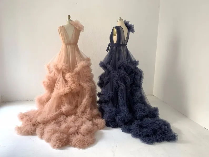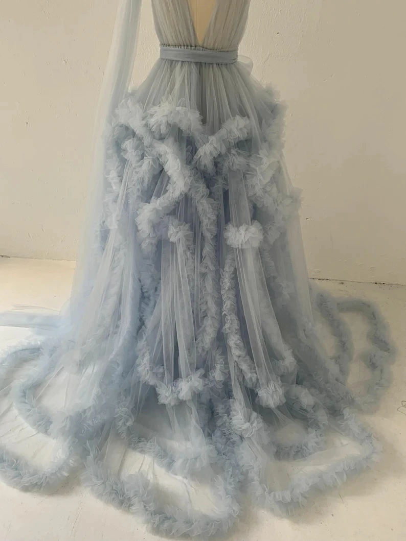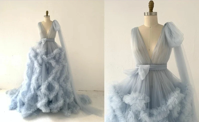 MQTIME  -  Blue Tulle Maternity Dress for Photo Shoot/Plus Size Maternity Gown/Baby Shower Dress/Photography Dress
