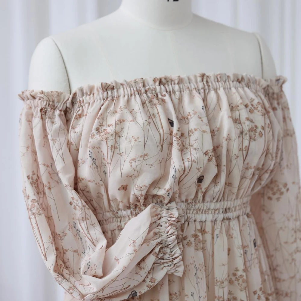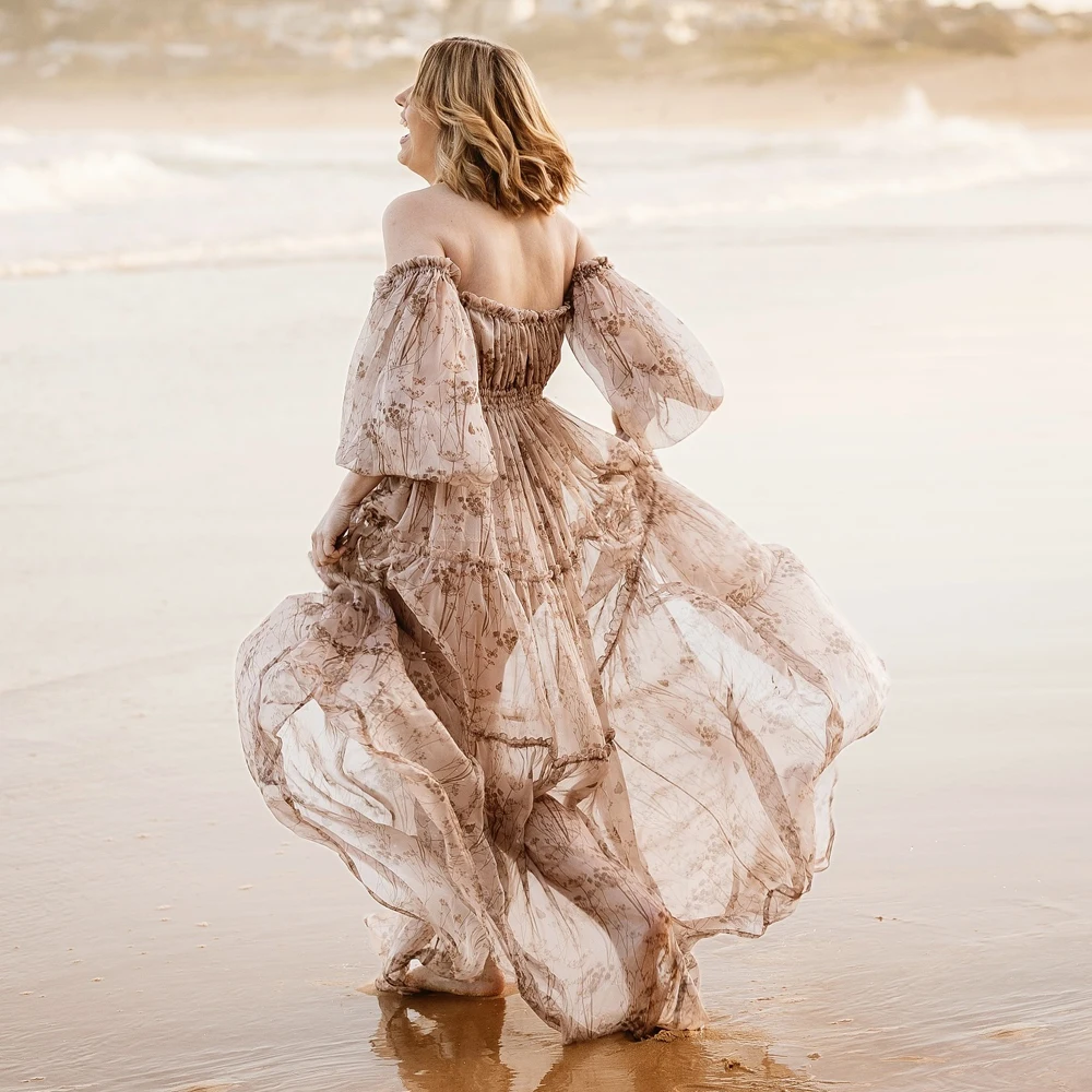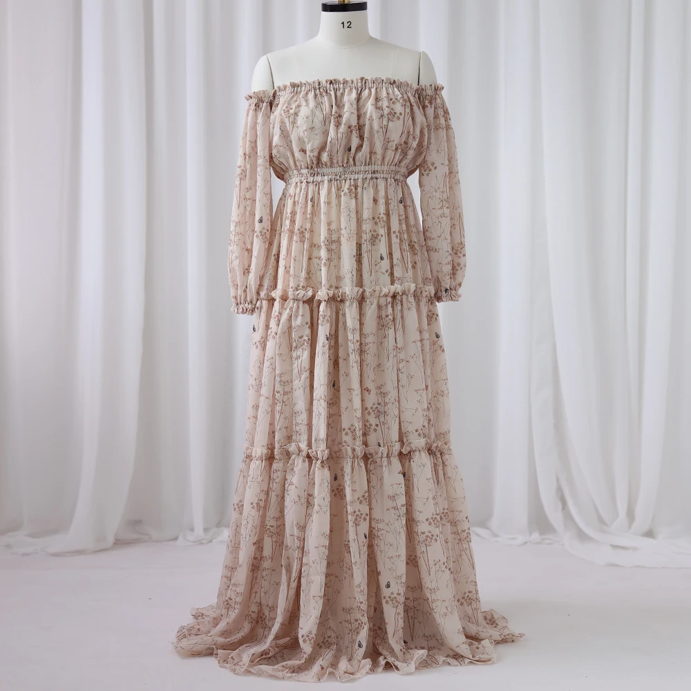 MQTIME - Bohemian Photo Shooting Pregnancy Dress Printed chiffon elegant off shoulder dress Photo Shoot Photography Dress For Women