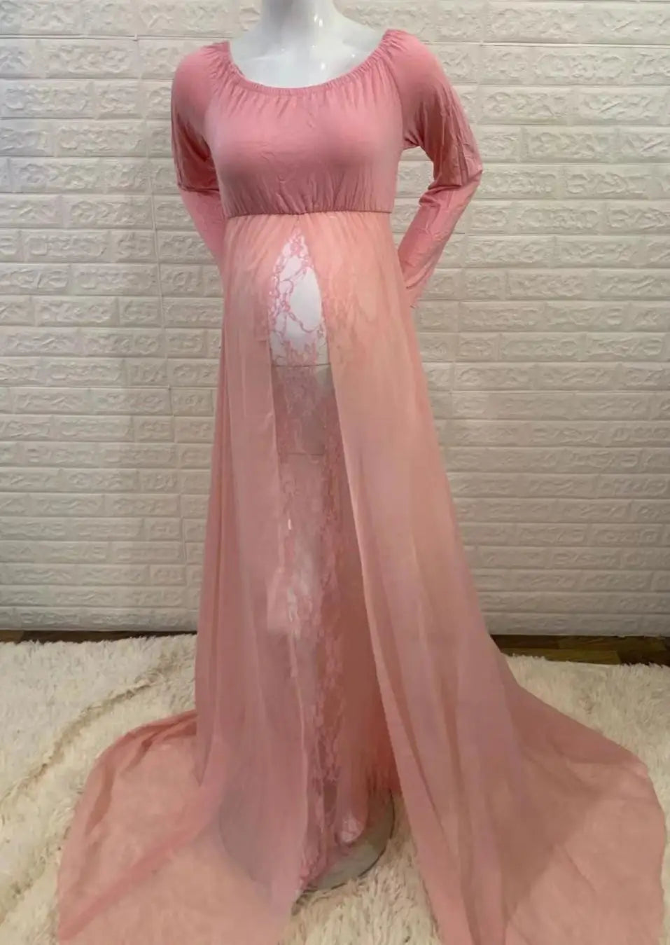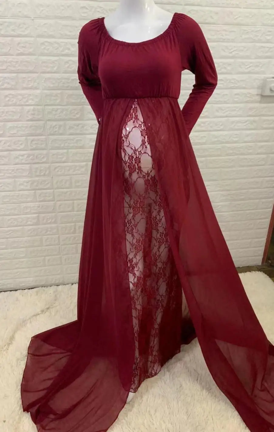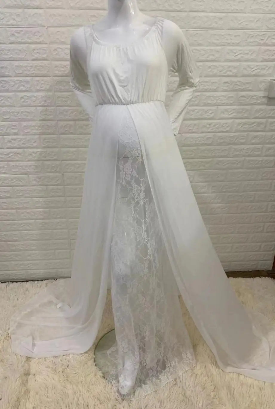 MQTIME  -  Chiffon Maternity Dress for Photography Pregnancy Photoshoot Dress Lace Baby Bump Shooting Dress for For Pregnant Women