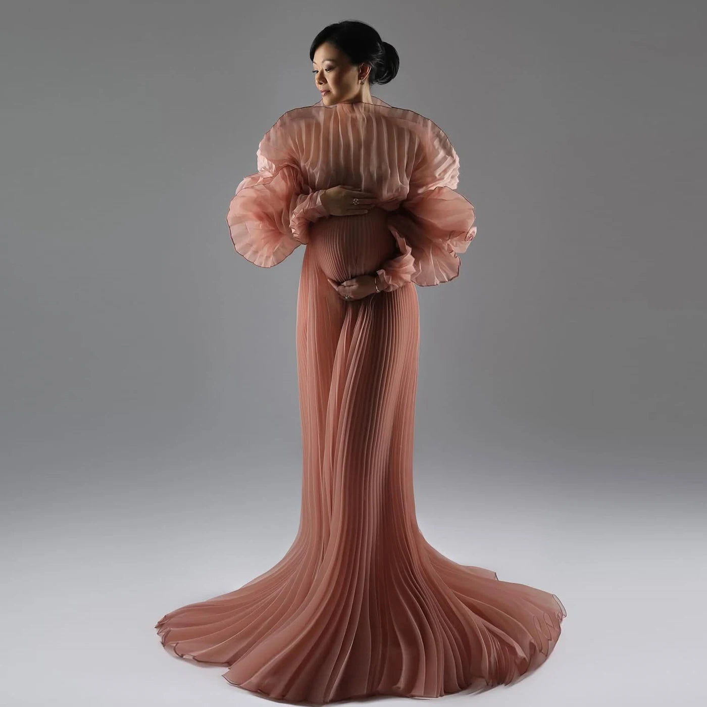 MQTIME - Dreamlike Pink Pleated Maternity Dresses Photoshoot Hot Sale Pleated Organza Maternity Dress Pregnancy Baby Shower Dress Custom