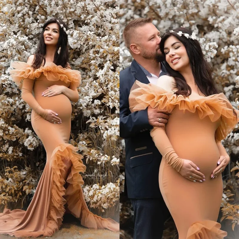 MQTIME - Elegant Mermaid Maternity Dress for Photoshoot Long Prom Dresses with Ruffles Side Split Baby Shower Gowns Vestido De Novia