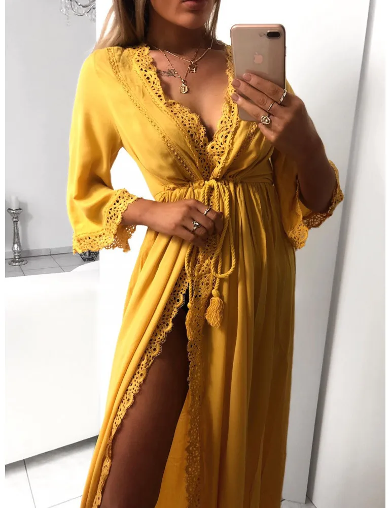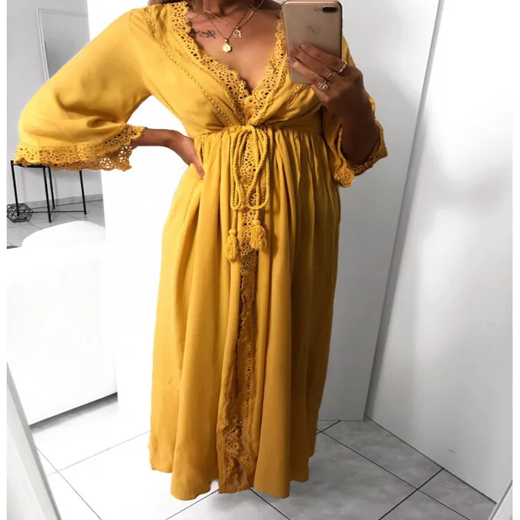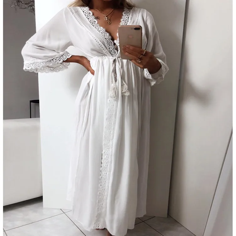 MQTIME - Lace Elastic Maternity Photography Props Dress Elasticity Waist Maternity Photo Shoot Cardigan Dress