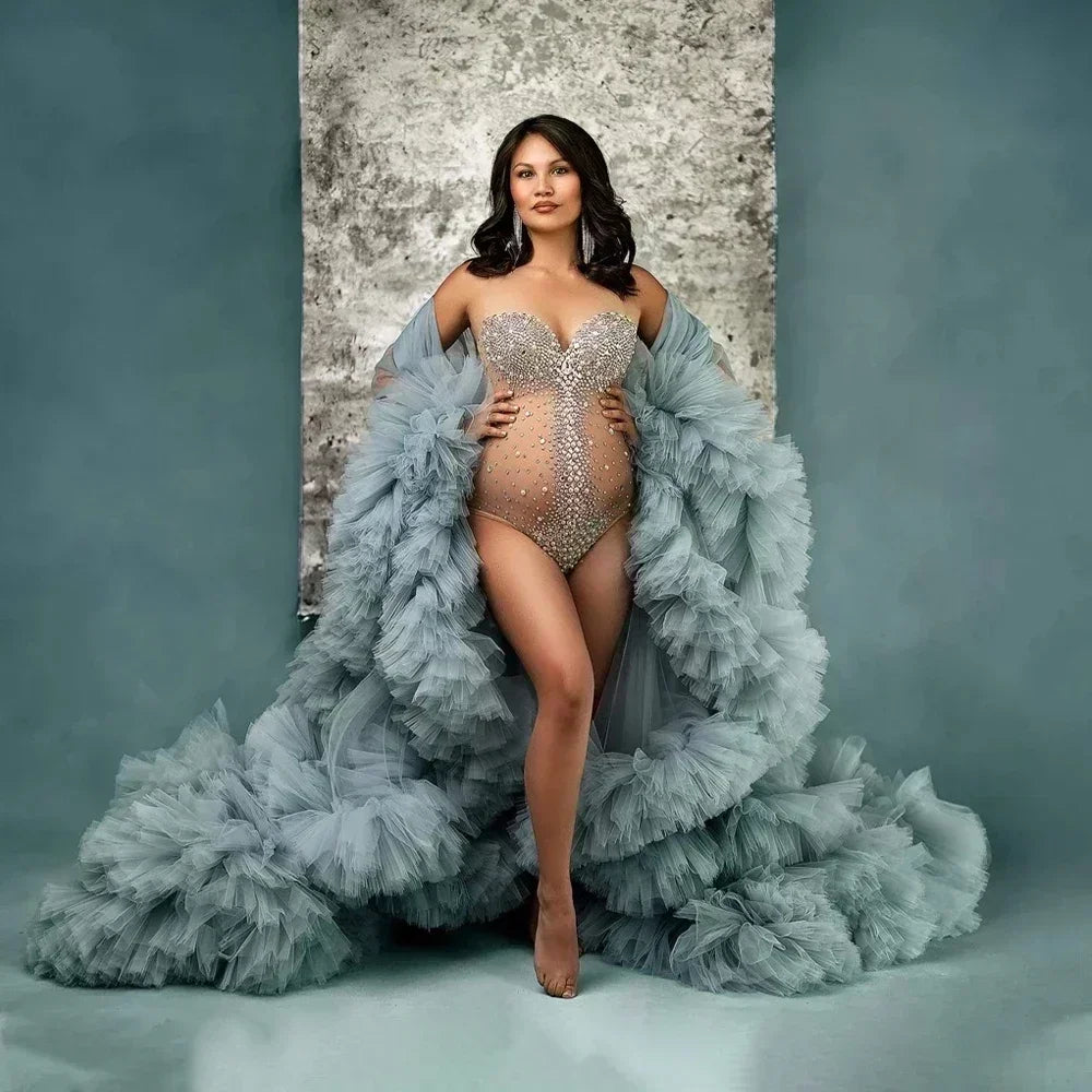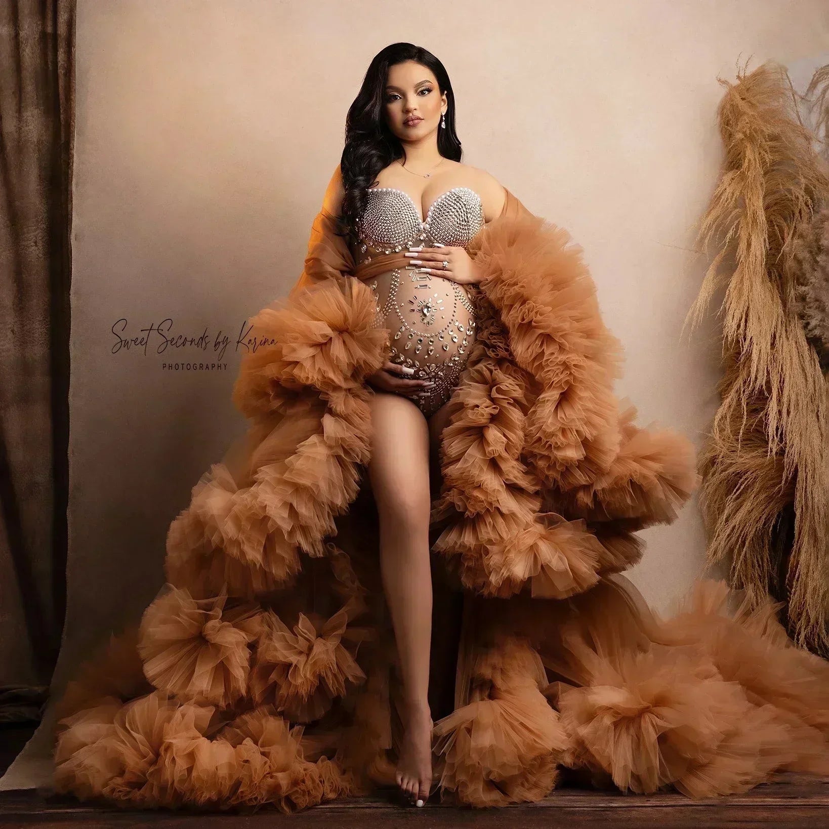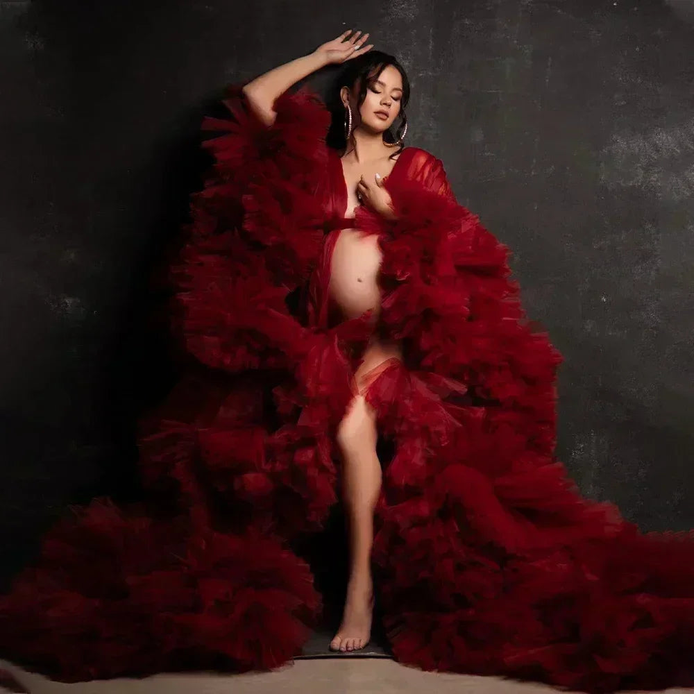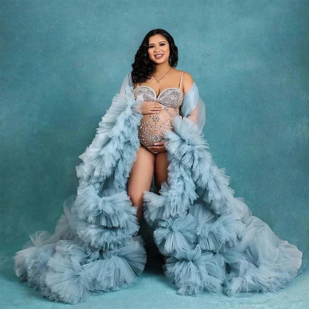 MQTIME - Luxury Customized Maternity Dresses for Photoshoot Tulle Robe Wedding Bridal Sleepwear Nightwear Front Split BabyShower Gown