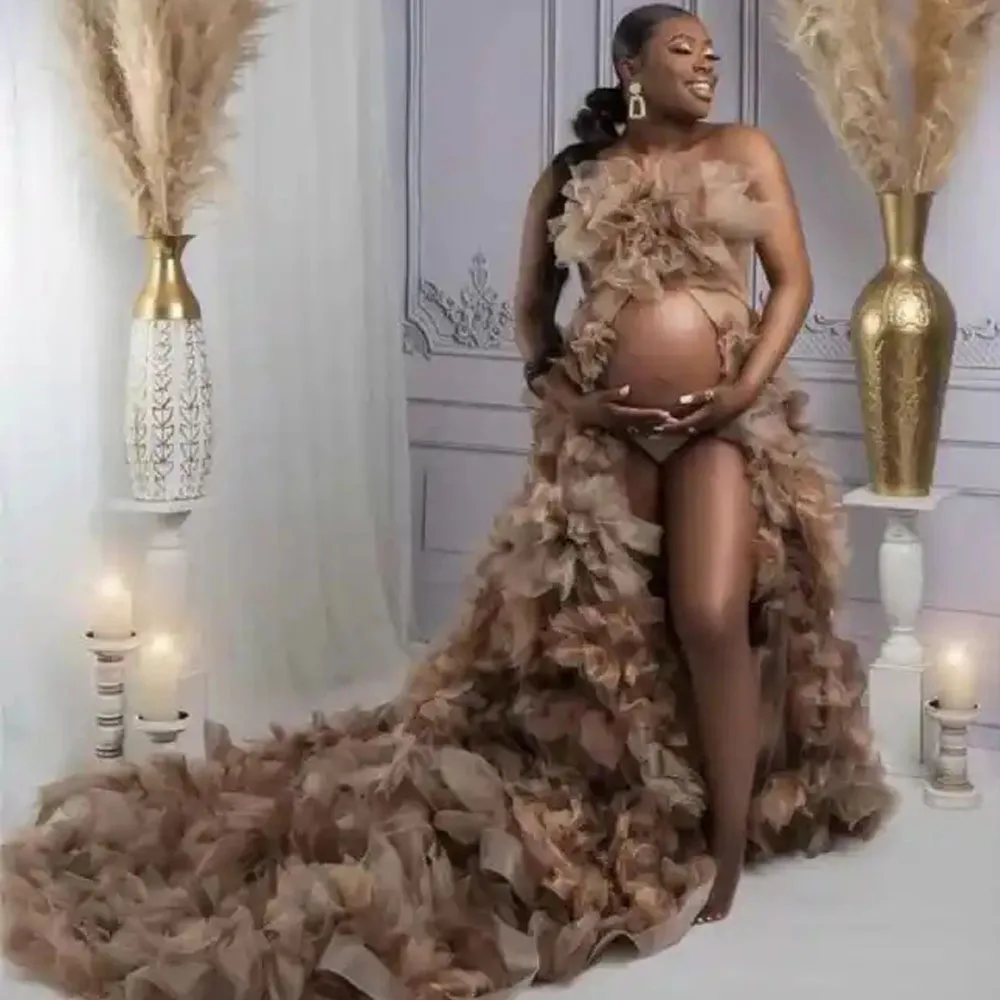 MQTIME - Luxury Ruffles Maternity Gowns for Photo Shoot 3d Maternity Dress nova mama skirt African American fluffy
