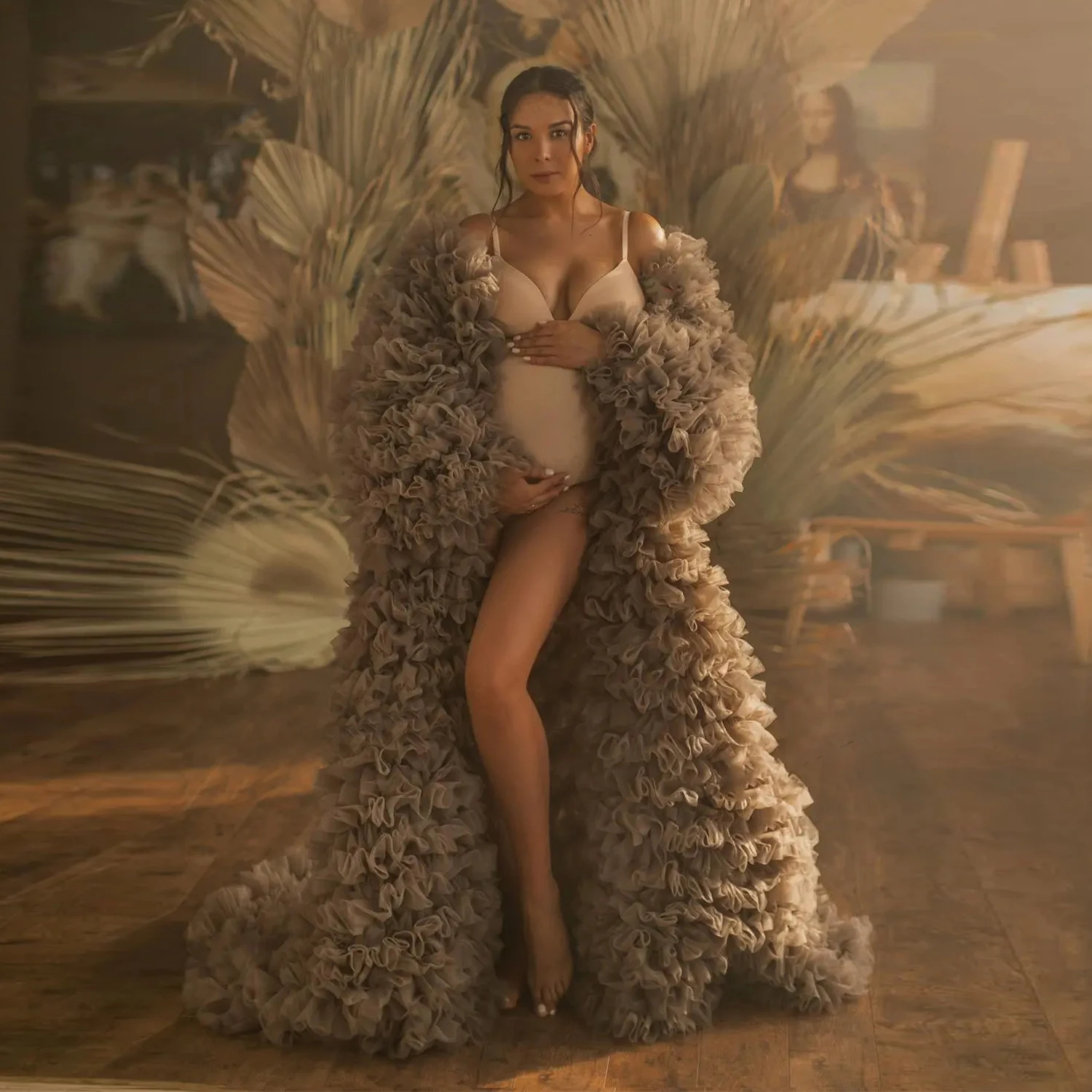MQTIME - Luxury Ruffles Tulle Prom Long Jackets for Pregnant Women Extra Puffy Maternity Gowns Women Robes Photoshoot Long Vest Custom