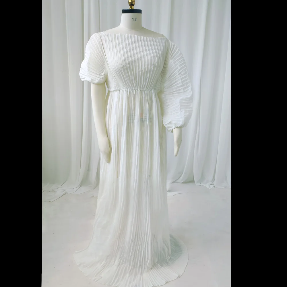 MQTIME - Maternity Dresses For Baby Showers One Necked Single Sleeved Pleated Dress Photo Shoot Photography Dress For Women