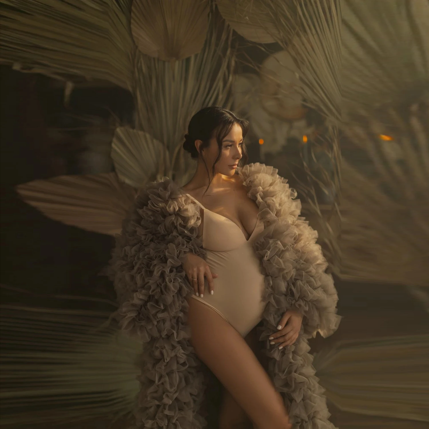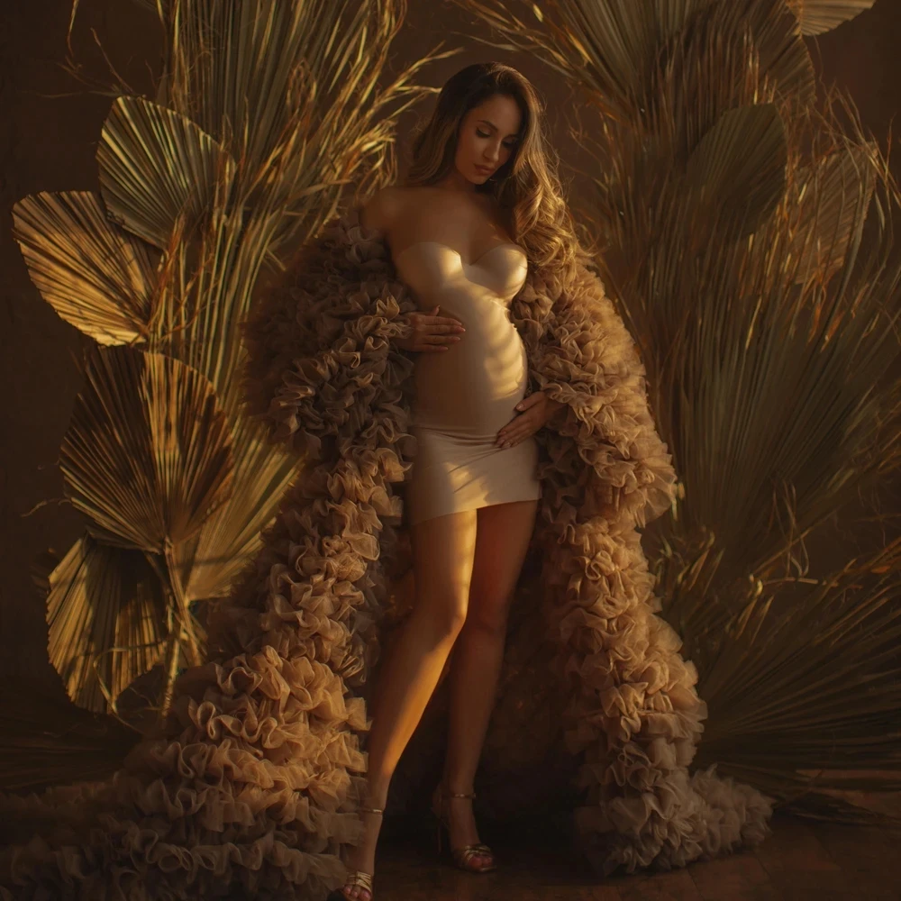 Mqtime Maternity Gowns Maxi Robe Ruffled Tulle Photography Tiered Materntiy Dress with Sleeves Puffy Lush Jackets Women Custom Made