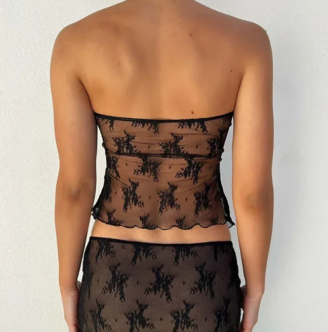 MQTIME - Maternity Lace Tube Top Hollow Out Skirt Two Piece Set For Photoshoot baby shower Photographie de vêtements de maternité