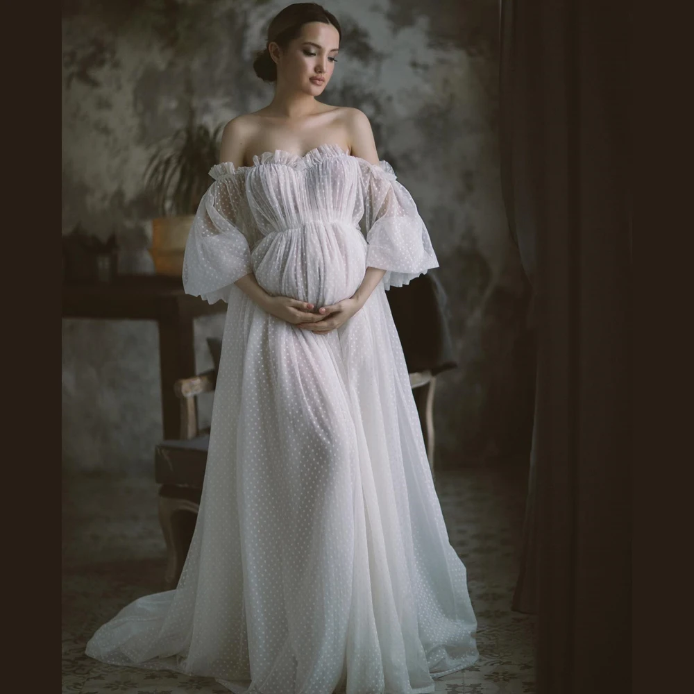 MQTIME - Maternity Photography Dresses Tulle off Shoulder Gown Boho Bridal Dot Wedding Dress Photo Shoot Photography Dress For Women