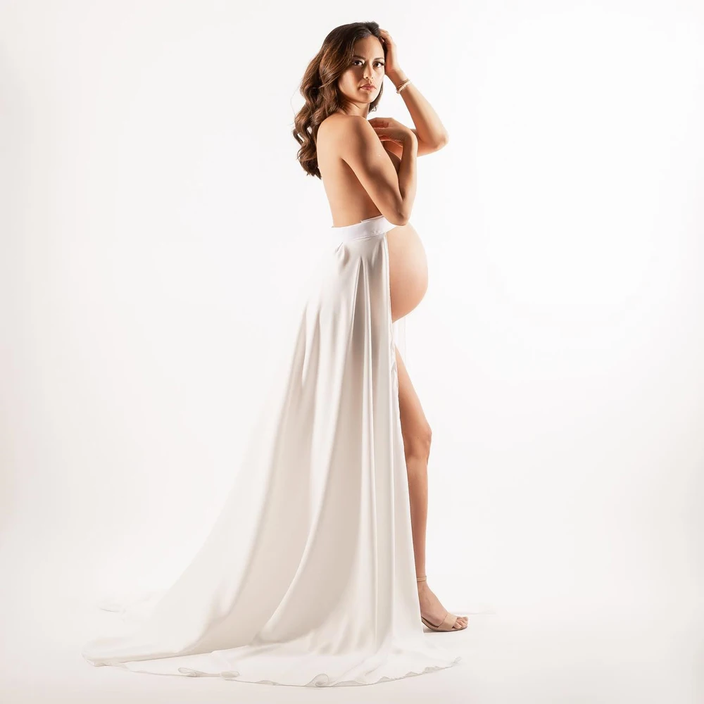 MQTIME - Maternity Photography Props Dress Elegant Satin Lace Up Skirt Bubble Sleeves Photoshoot Dress For Women Studio Props Clothes