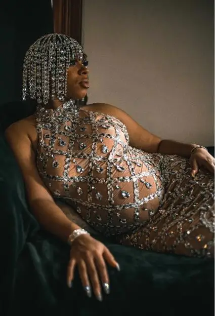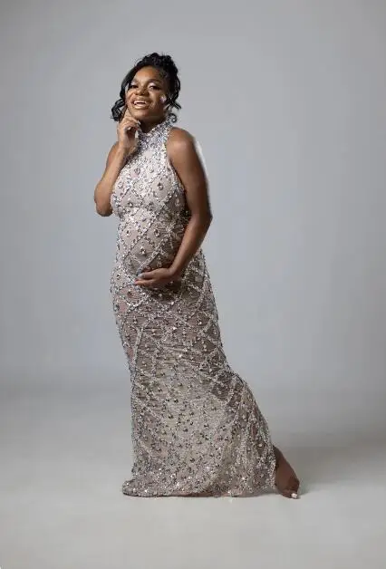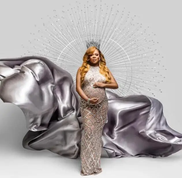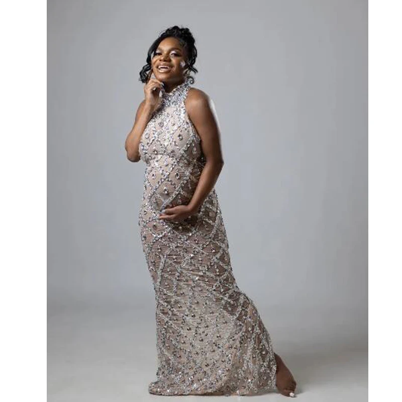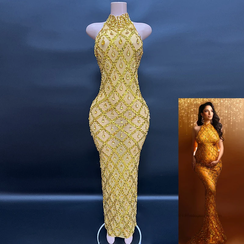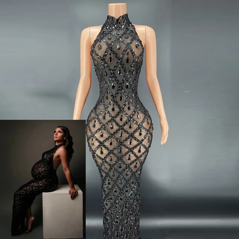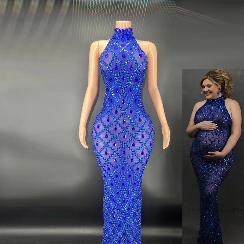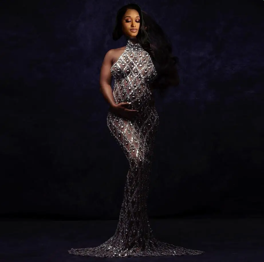 MQTIME - Maternity Photography Sexy Shiny Goddess Bodysuit Rhinestone Maternity Dress For Photo Shoot
