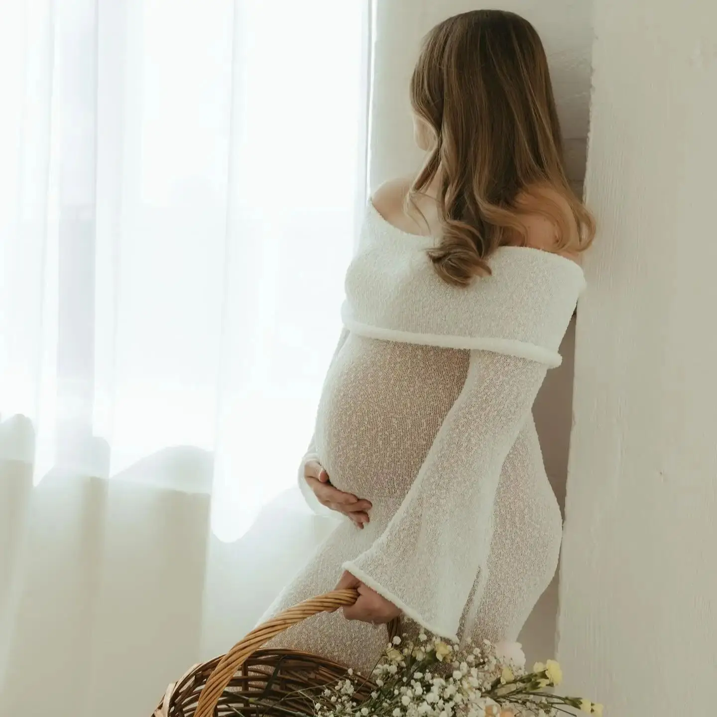 MQTIME - Maternity Photoshoot Dress Long Sleeve knit Off Shoulder Maxi Gown Pregnancy Pictures maternity dress photoshoot Baby Shower