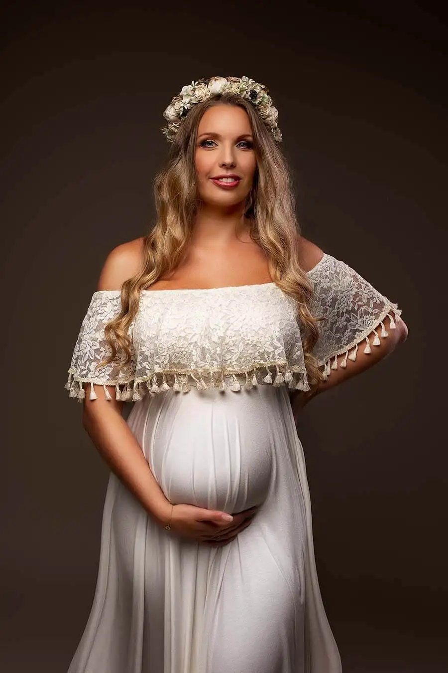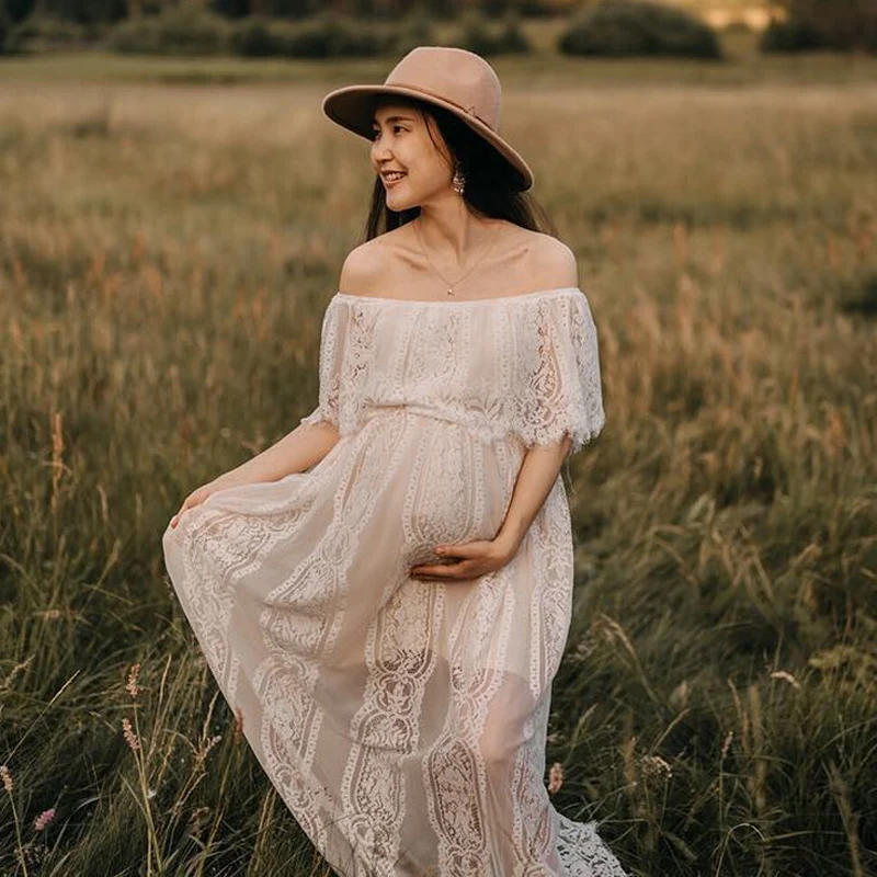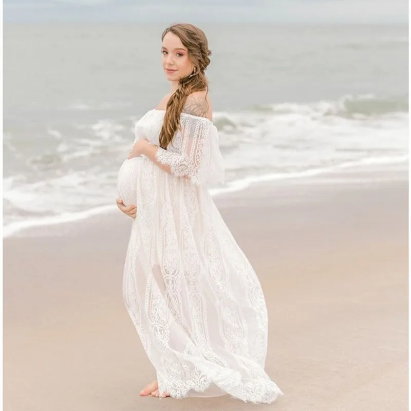 MQTIME - Photography Maternity Dress Off Shoulder Lace Baby Shower Pregnant Wedding Dress