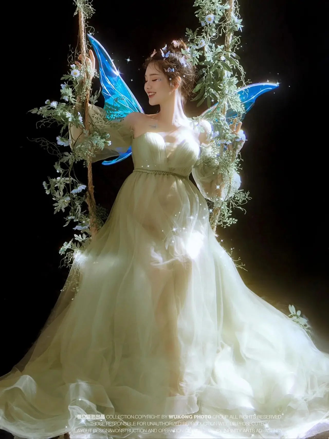 MQTIME - Photography Props Forest Green Fairy Maternity Dresses for Photo Shoot Pregnancy Dress Pregnant Elegant Studio Prop