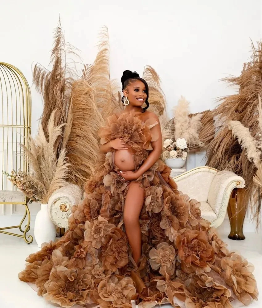 MQTIME - Photography Ruffle Lush Women Maternity Dress Maxi Gown Long Pregnancy Dress New Designs Tulle Maternity Dresses Babyshower