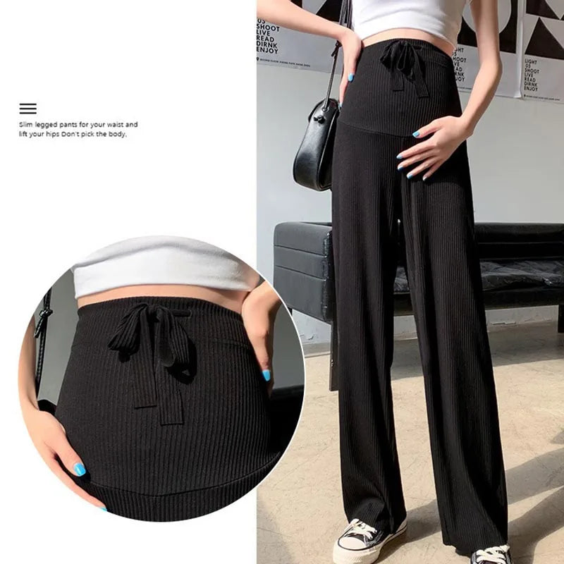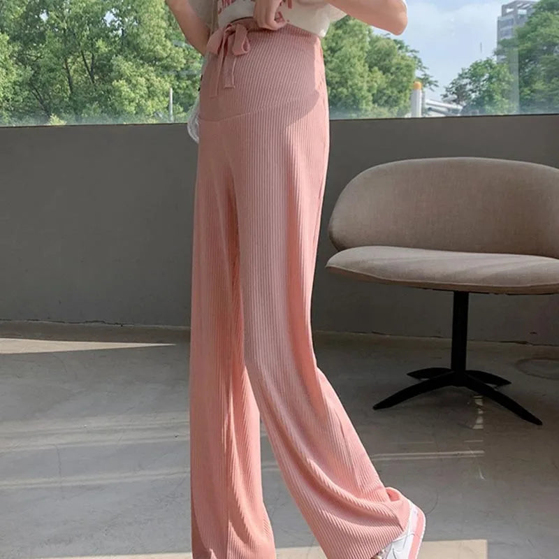Mqtime Plus Size Maternity Pant Summer Maternity Ice Silk Pant Summer Maternity Wear Wide-leg Pant Thin Outer Wear Loose Pleated Pant