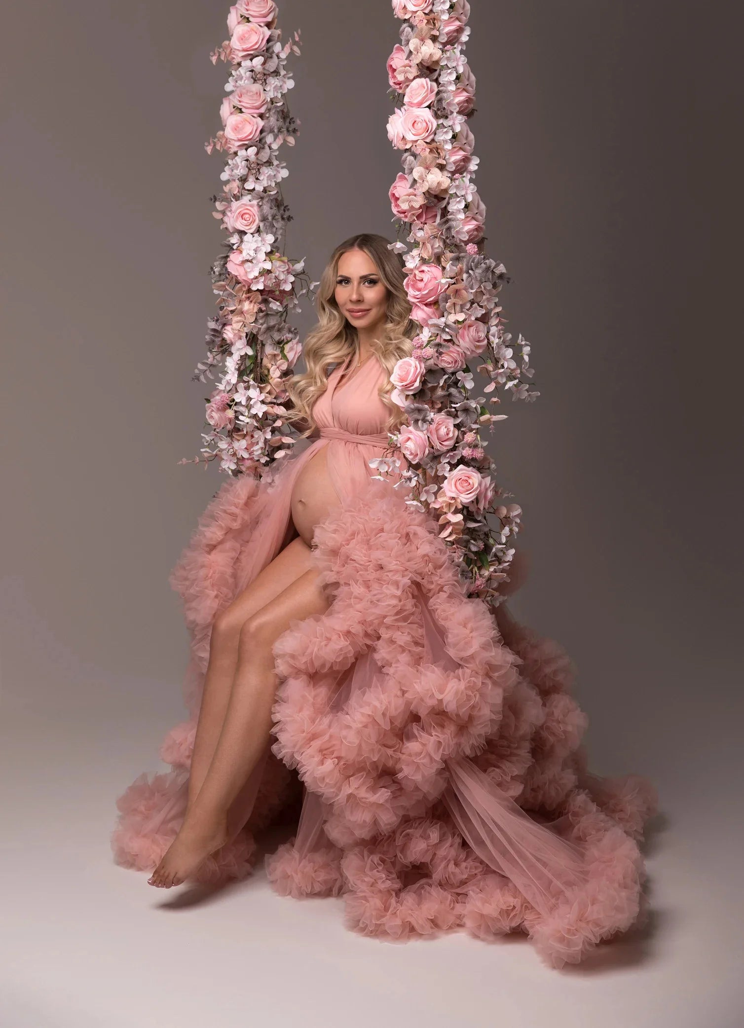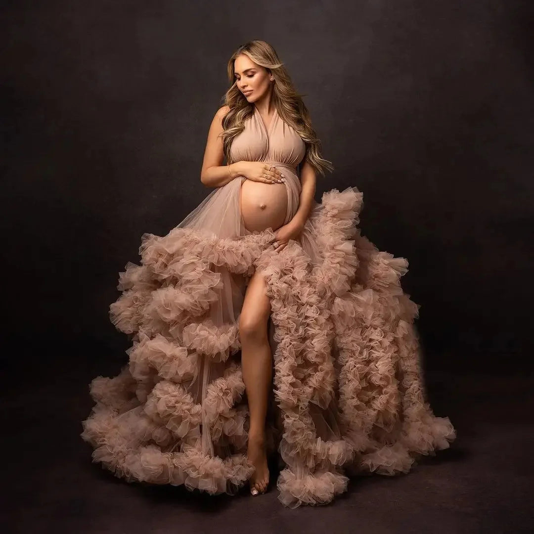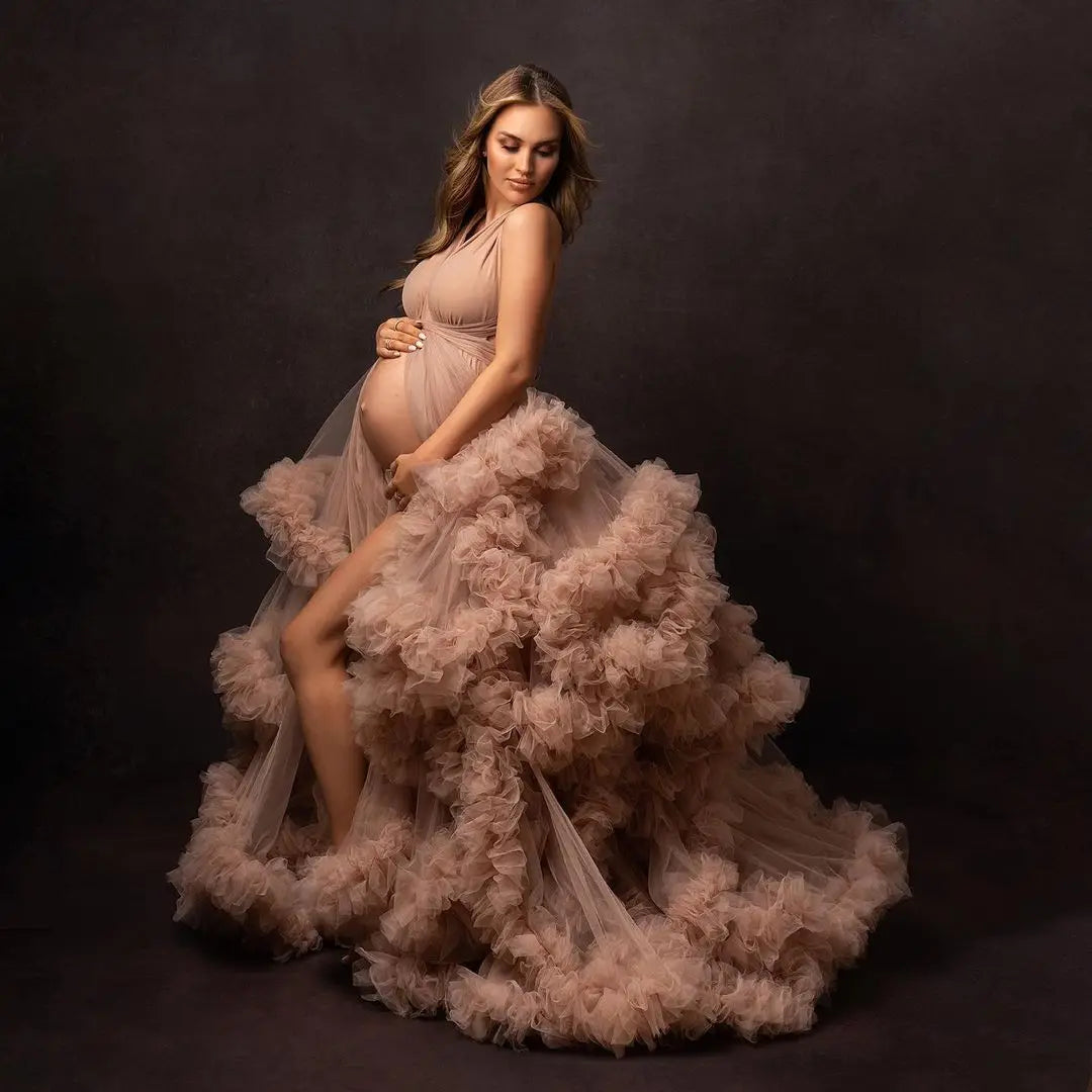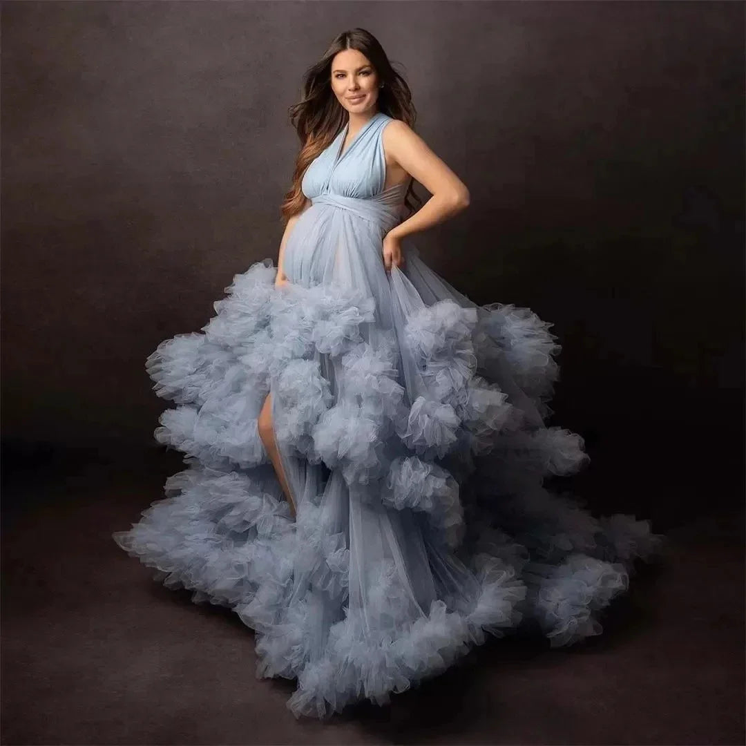 MQTIME - Purple Maternity Dress for Woman V Neck Ruffles Prom Party Gowns Pregnancy Babyshower Outfit Robe Photography Props Customized