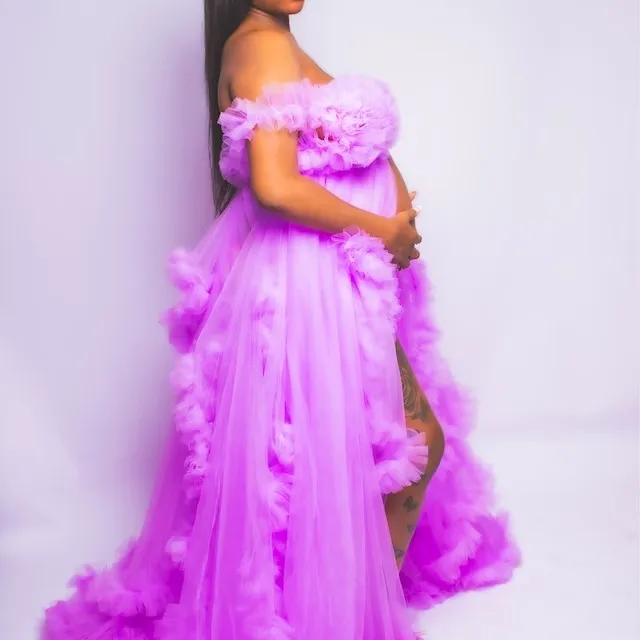 MQTIME - Tiffany Maternity Dress/ Ruffle Tulle Dress Photo Shoot Dress//Adjustable Waist Maternity Dress//Custom Color/Skirt Slit