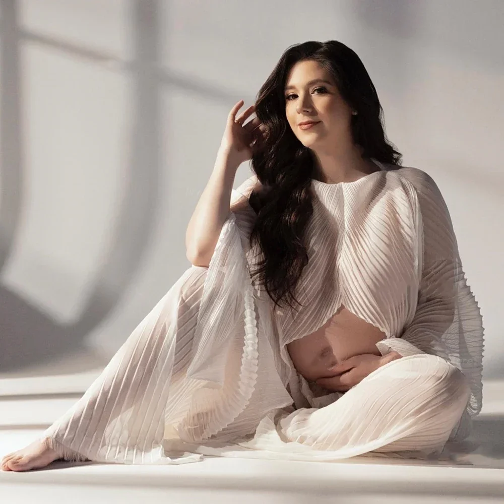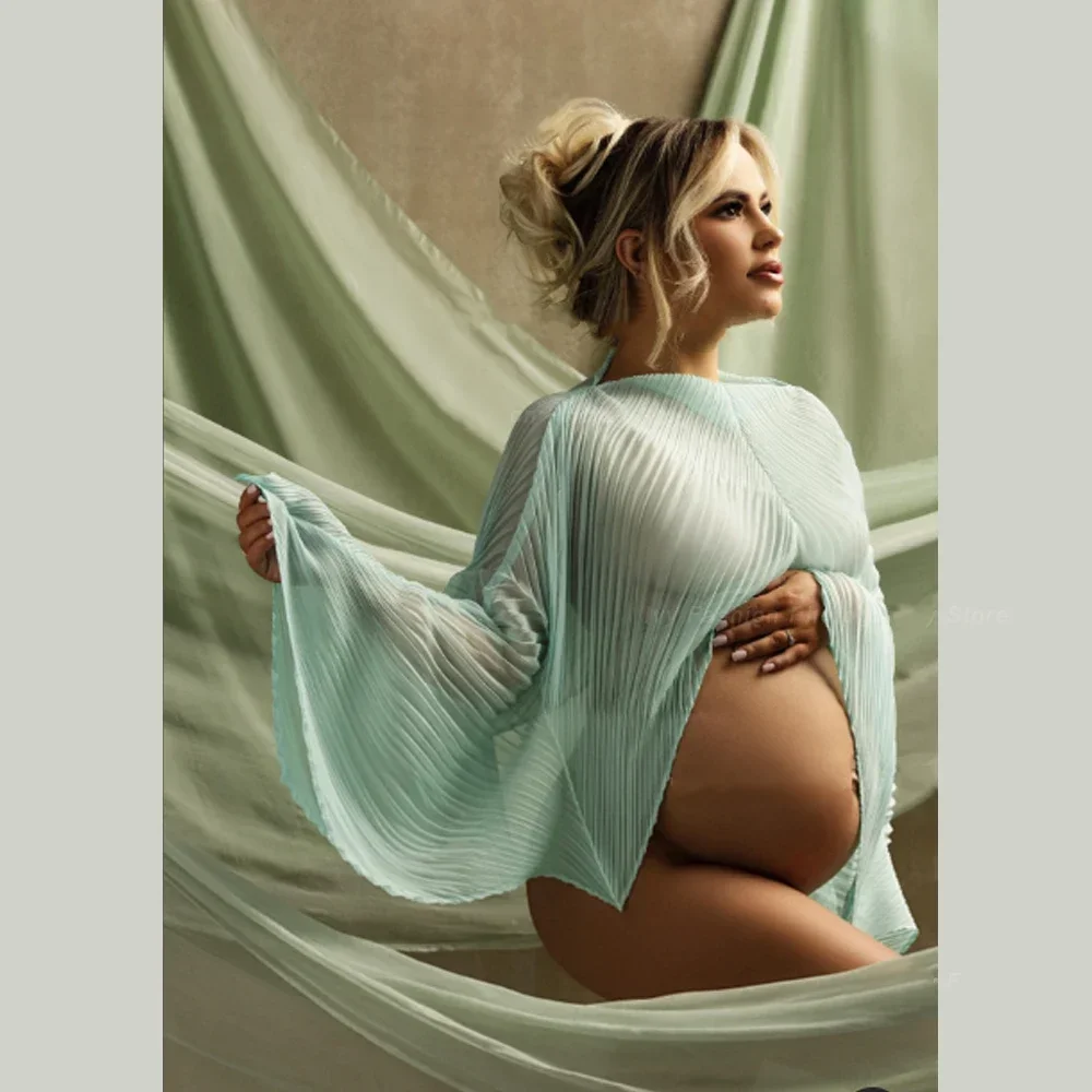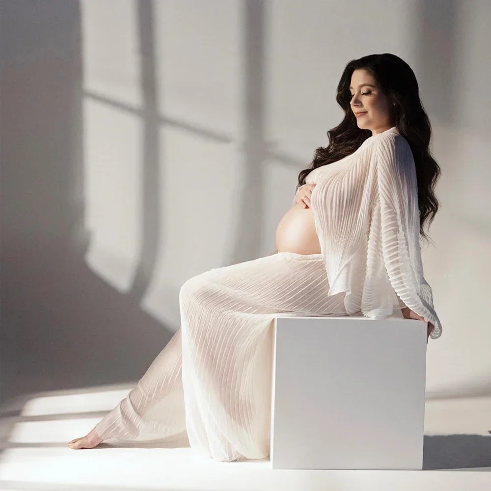 MQTIME - White Chiffon Maternity Photography Props Dress Sexy Transparent Tulle Off Shoulder Dress For Photo Shoot Pregnant Women