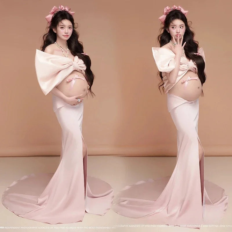MQTIME - Women Photography Props Elegant Maternity Dress Bow-knot Top and Long Skirt Korean Princess Dresses Studio Shoot Photo Clothes