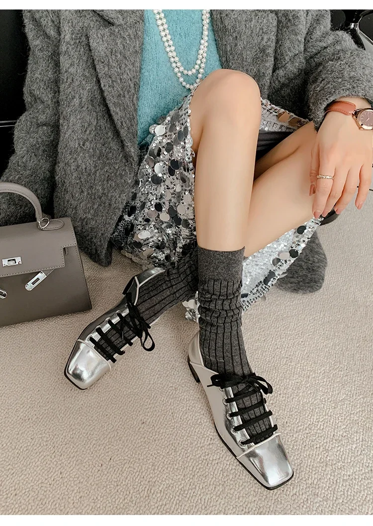 MQTIME - 2024 summer women sandals natural Leather shoes 22-24.5cm cowhide+sheepskin lace up Mary Jane shoes square toe women shoes