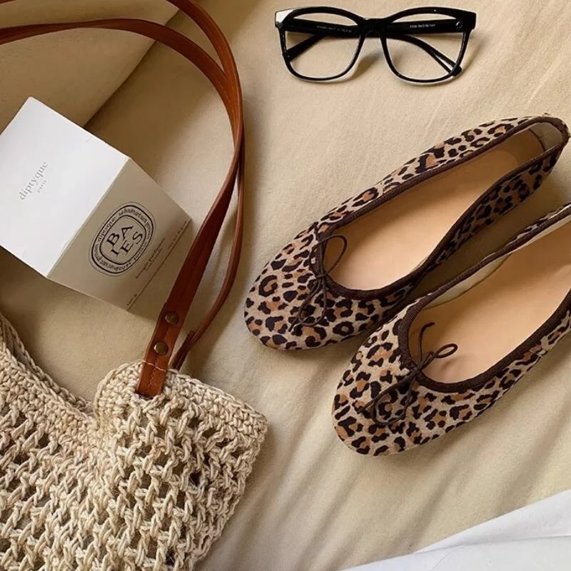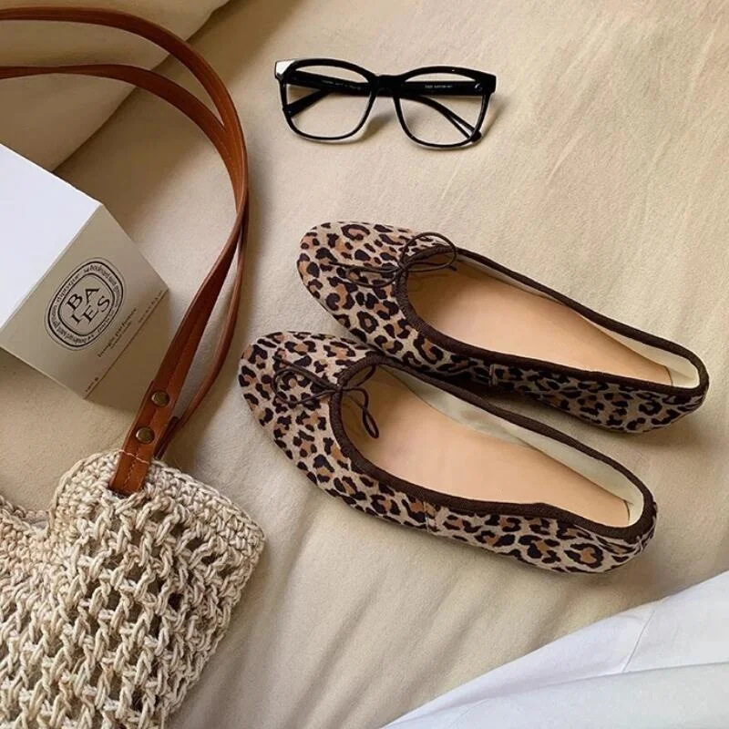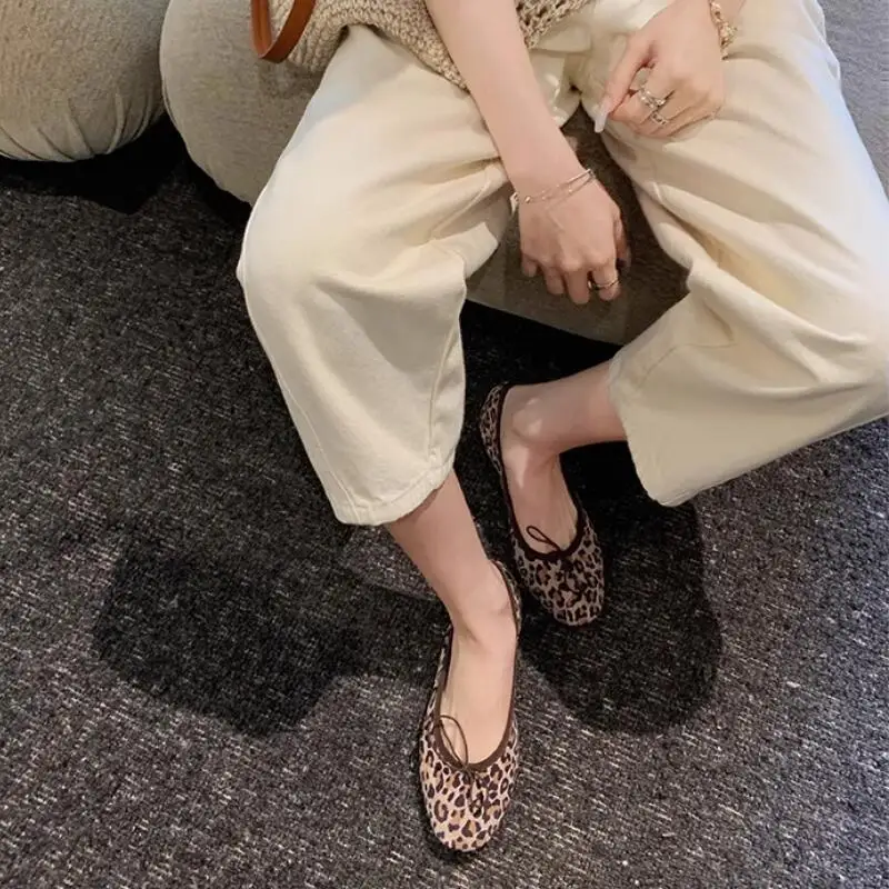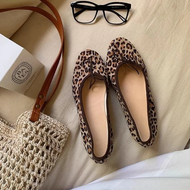 MQTIME - Autumn Leopard Print Women Mary Jane Shoes Fashion Shallow Butterfly-knot Slip On Ladies Comfort Soft Sole Ballerina Flats Shoes