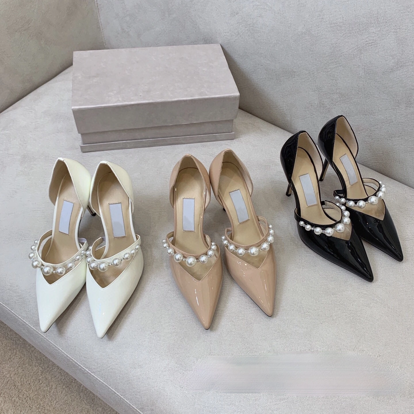 Mqtime Autumn New Pointed High Heel Women's Shoes Pearl Strap Hollow Pumps Fairy Shoes